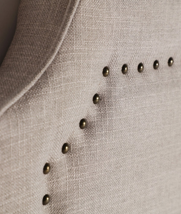 Табла за легло правоъгълна, стил колониален, изработена от лен в бежово, комбиниран с борова дървесина и полиестер.