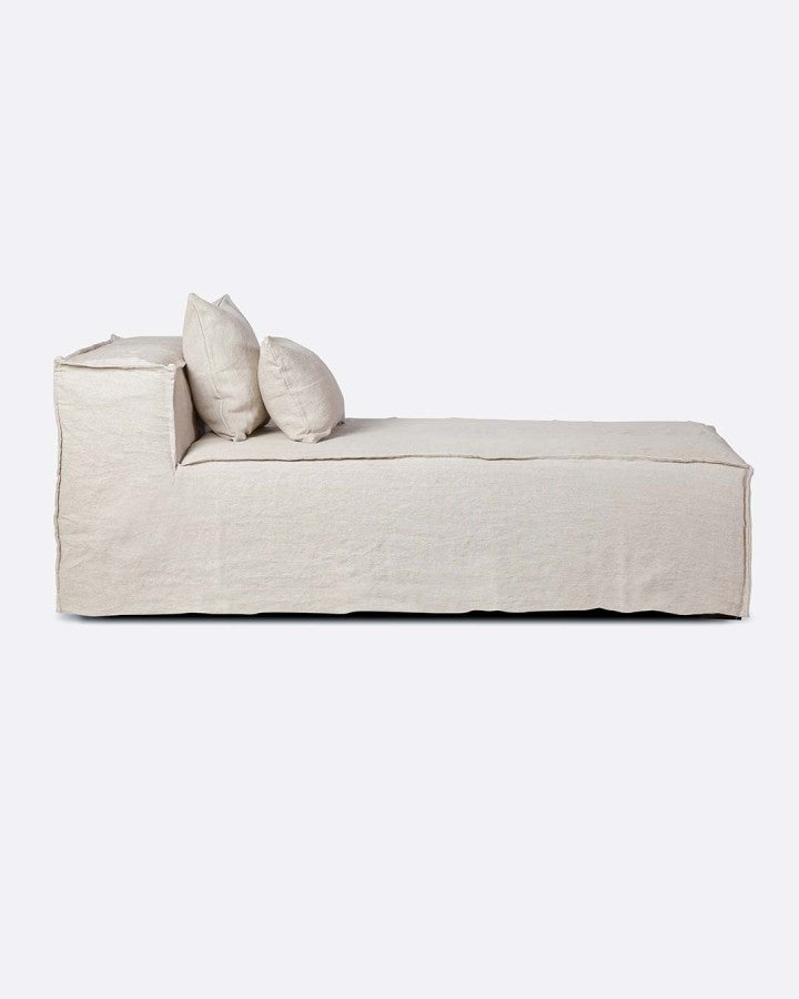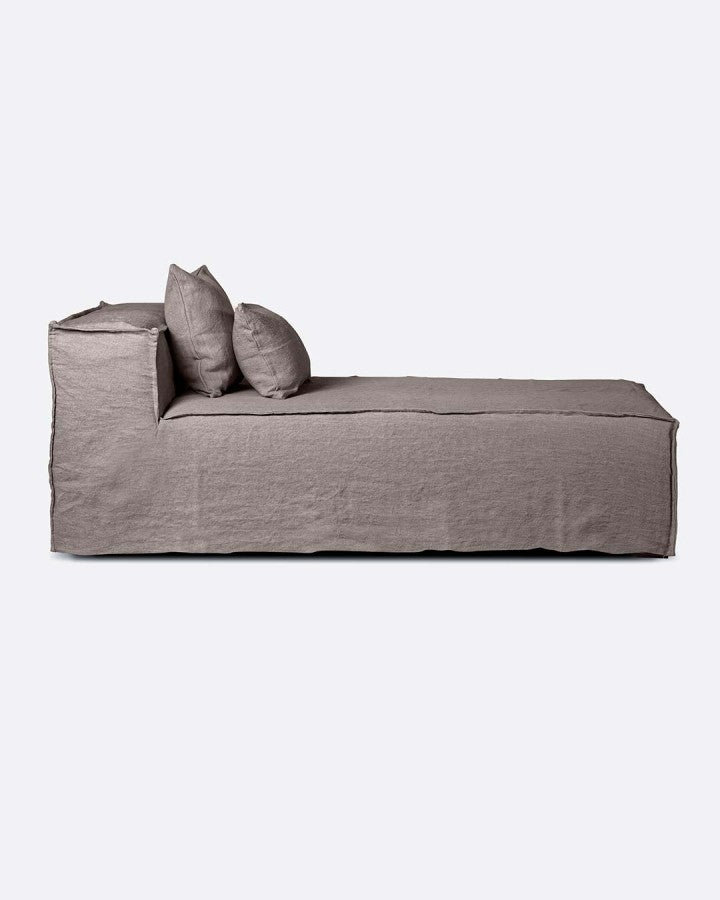 - Уникалният шезлонг LINUS Brown в неутрален цвят е изработен от висококачествен лен. Той има права повърхност, но мек контур.