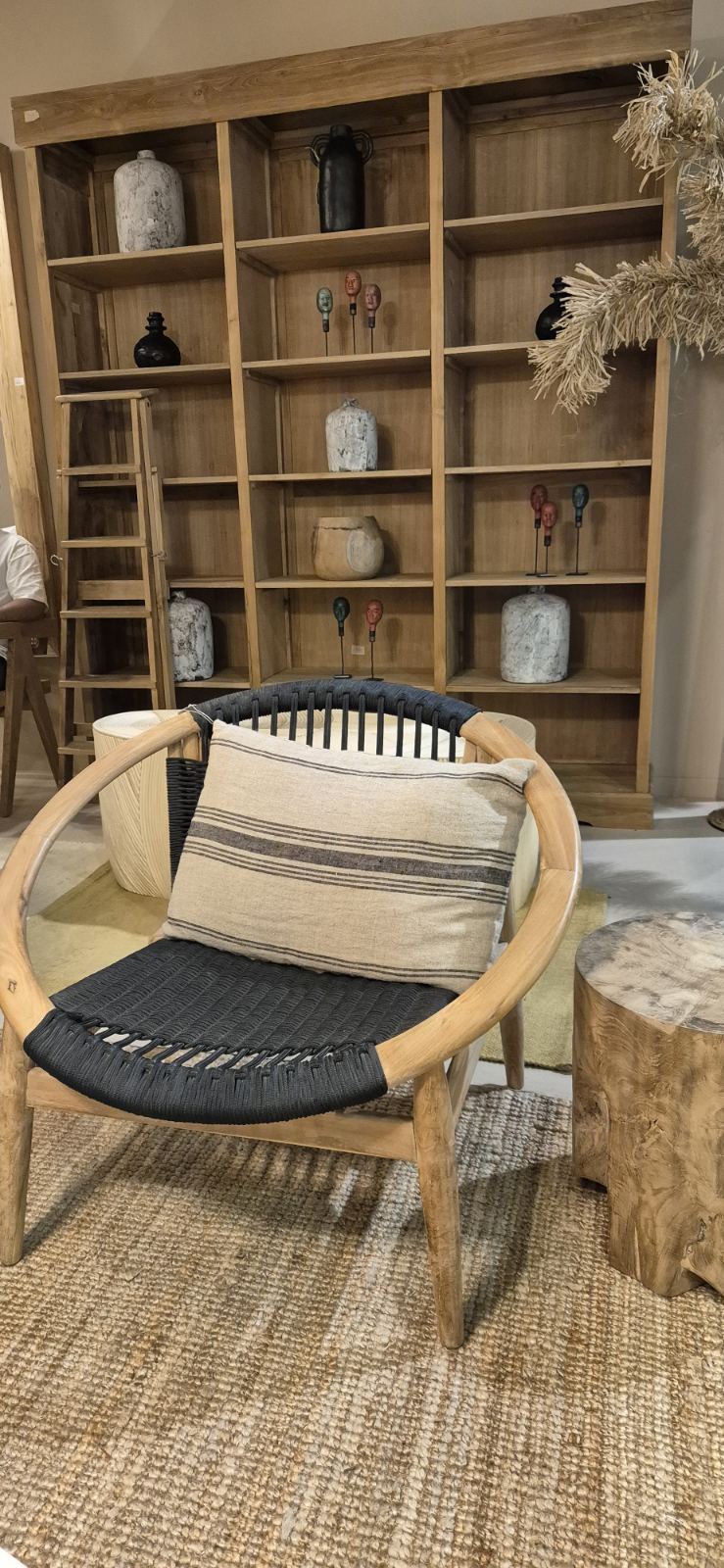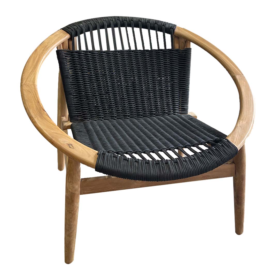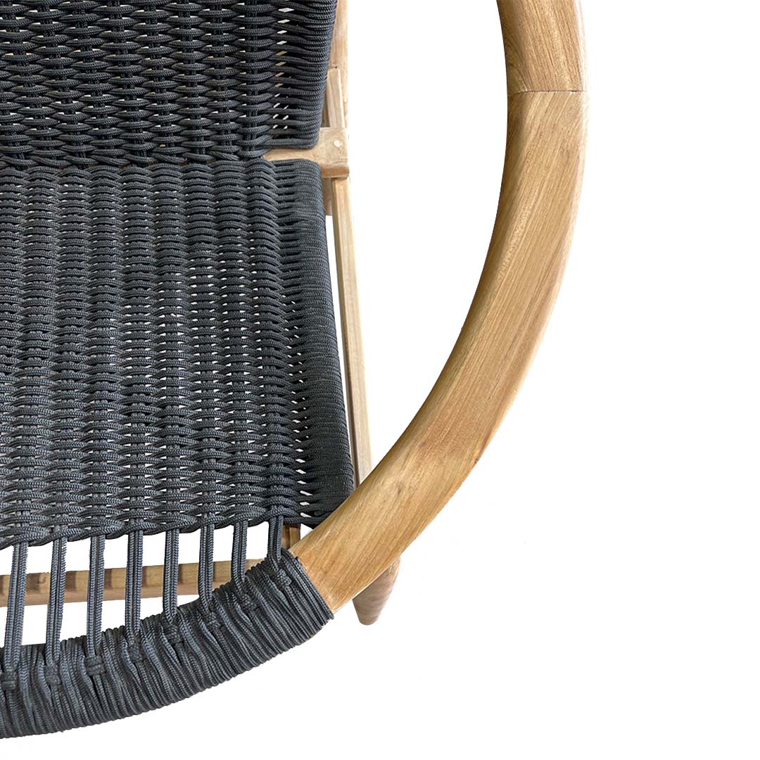 Материал : Конструкция от тиково дърво / седалка и облегалка от въжета