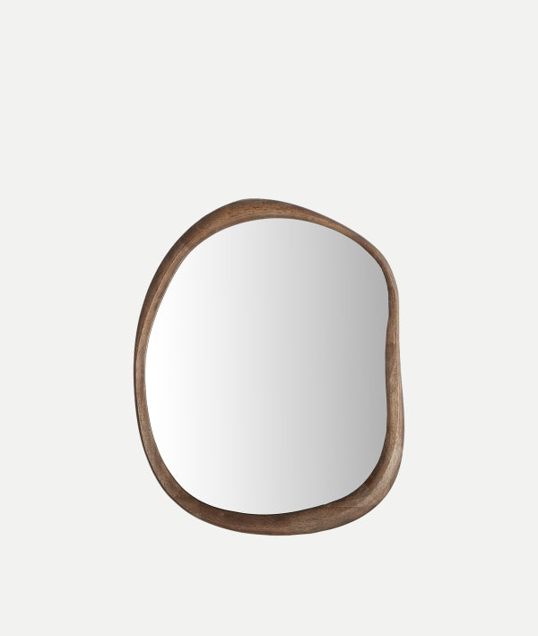 Това асиметрично огледало Lubeca предава динамика и автентичност чрез естествените си материали.