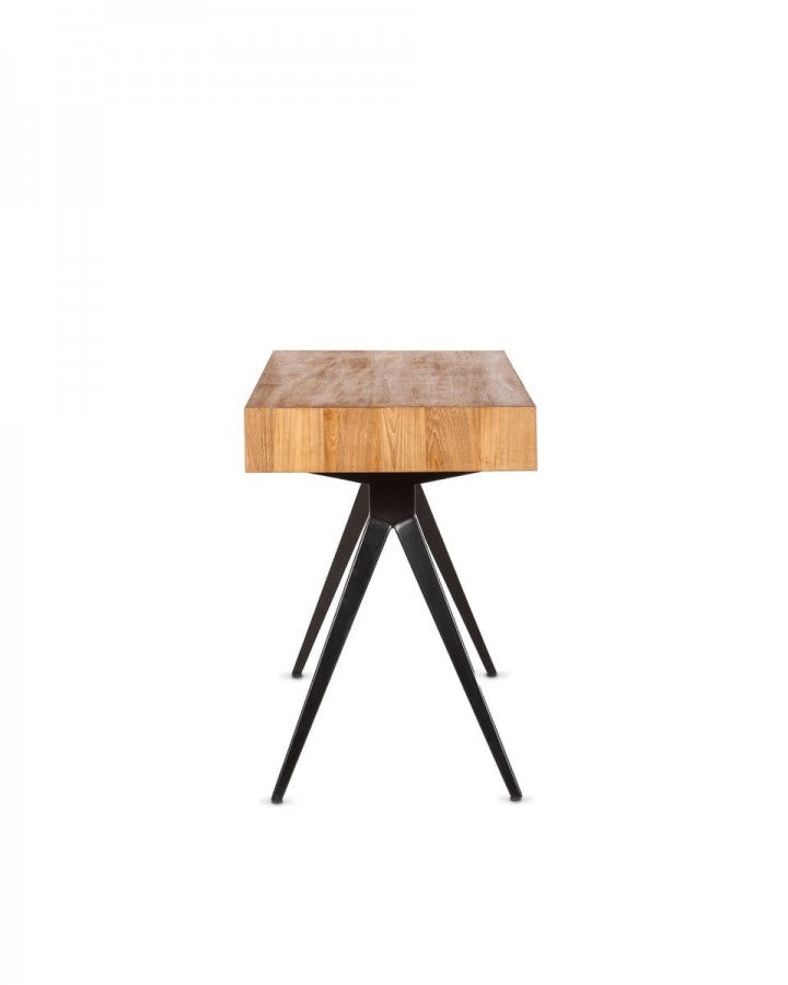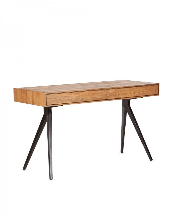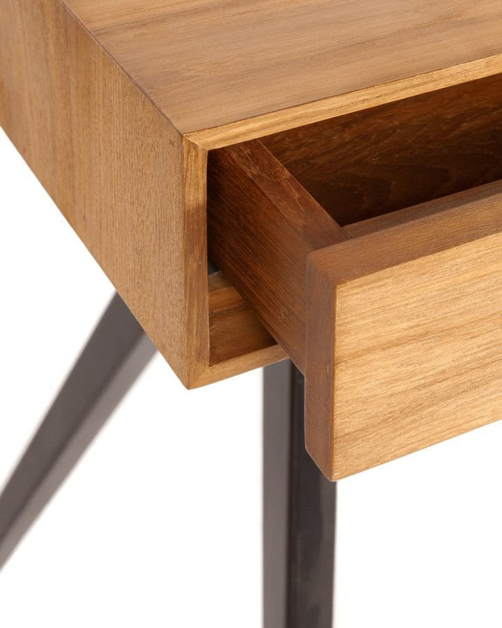 - Бюро MAJESTI TEAK NAT е уникална дизайнерска мебел. Парчето съчетава два материала по балансиран начин: плотът е направен от регенерирано тиково дърво с гладко покритие; и краката, проектирани със стилизирана фигура, която осигурява уникална и модерна форма, са изработени от желязо. Тези материали имат много различни текстури, но същевременно се допълват перфектно и постигат внушителен и мощен външен вид. Писателското бюро MAJESTI, елегантно и минималистично, се вписва много добре във всяко пространство на хола, спалнята или офиса и се адаптира в перфектна хармония с други мебели. Структурата му има две големи чекмеджета, за да можете да съхранявате всичко, от което се нуждаете. Тиковото дърво, от което е направено това бюро, е регенерирано от стари изоставени сгради в Ява (Индонезия) и ръчно изработено от нашите занаятчии по устойчив начин. За различно покритие/цвят можете да проверите и MAJESTI TEAK BLACK.