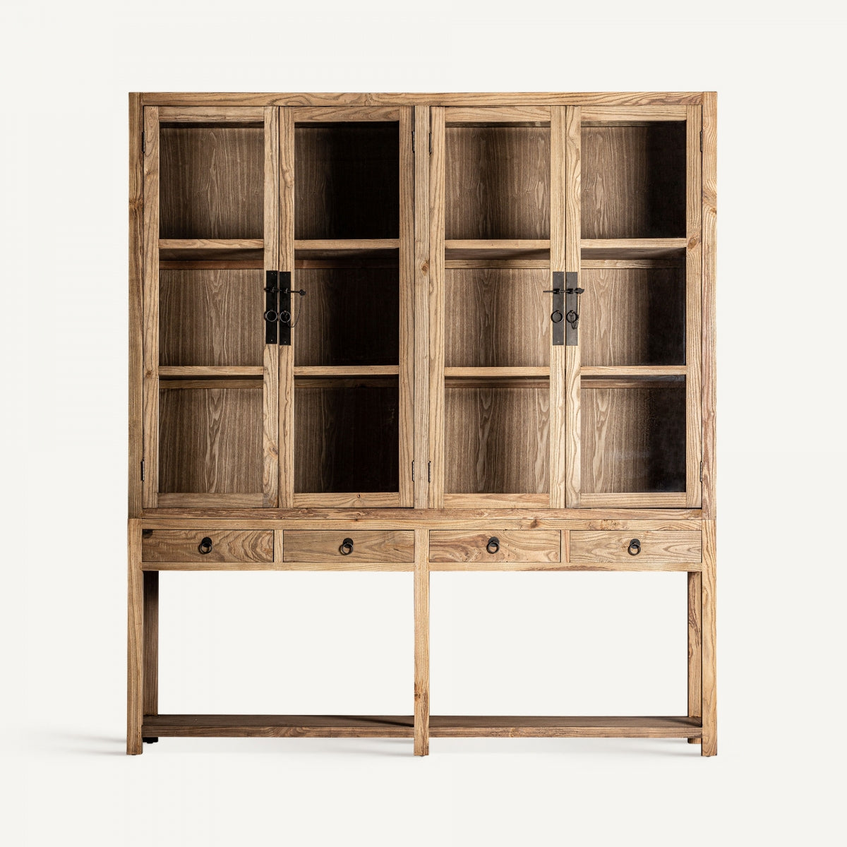 Стъклен шкаф Mawgan, стил колониален, изработен от брястово дърво в кафяво. Продуктът се разглобява.