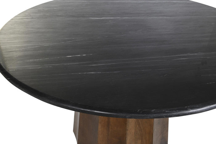 ТРАПЕЗАРНА МАСА ОТ ЧЕРЕН МРАМОР И МАНГОВО ДЪРВО 120 см