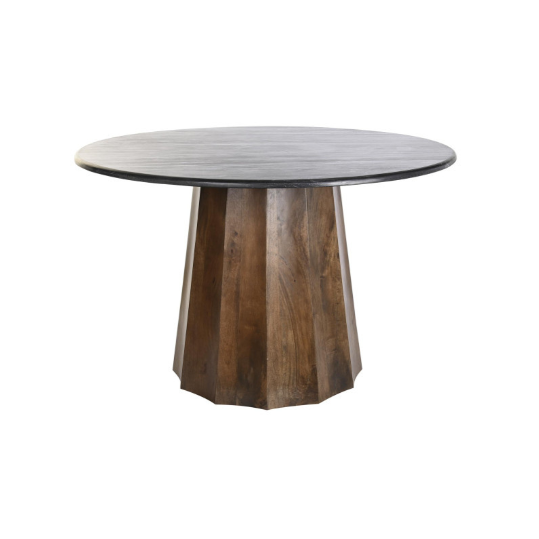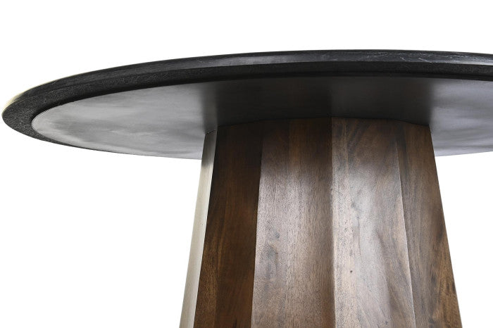 Тази елегантна кръгла маса за хранене е с плот от черен мрамор с диаметър 120 см, съчетан със здрави крака от мангово дърво, съчетаващи лукс и устойчивост. Изисканият ѝ дизайн внася вечна естетика във всяко пространство за хранене, а издръжливите материали осигуряват дълготрайност и лесна поддръжка. Идеална за тези, които търсят изтънчен централен елемент, който хармонизира естествената красота с отговорната изработка.
