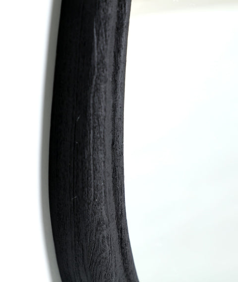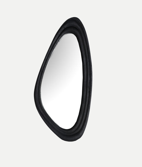 Това асиметрично стенно огледало с рамка от черно мангово дърво съчетава съвременен дизайн с артистична нотка. Неговата уникална и минималистична форма го прави идеално парче за уголемяване и декориране на всяко модерно пространство, независимо дали е хол, спалня или антре. С размери от 47x3x100 см , той добавя яркост и простор към стените, докато черното му покритие носи изисканост и елегантност, лесно се адаптира към различни декоративни стилове.