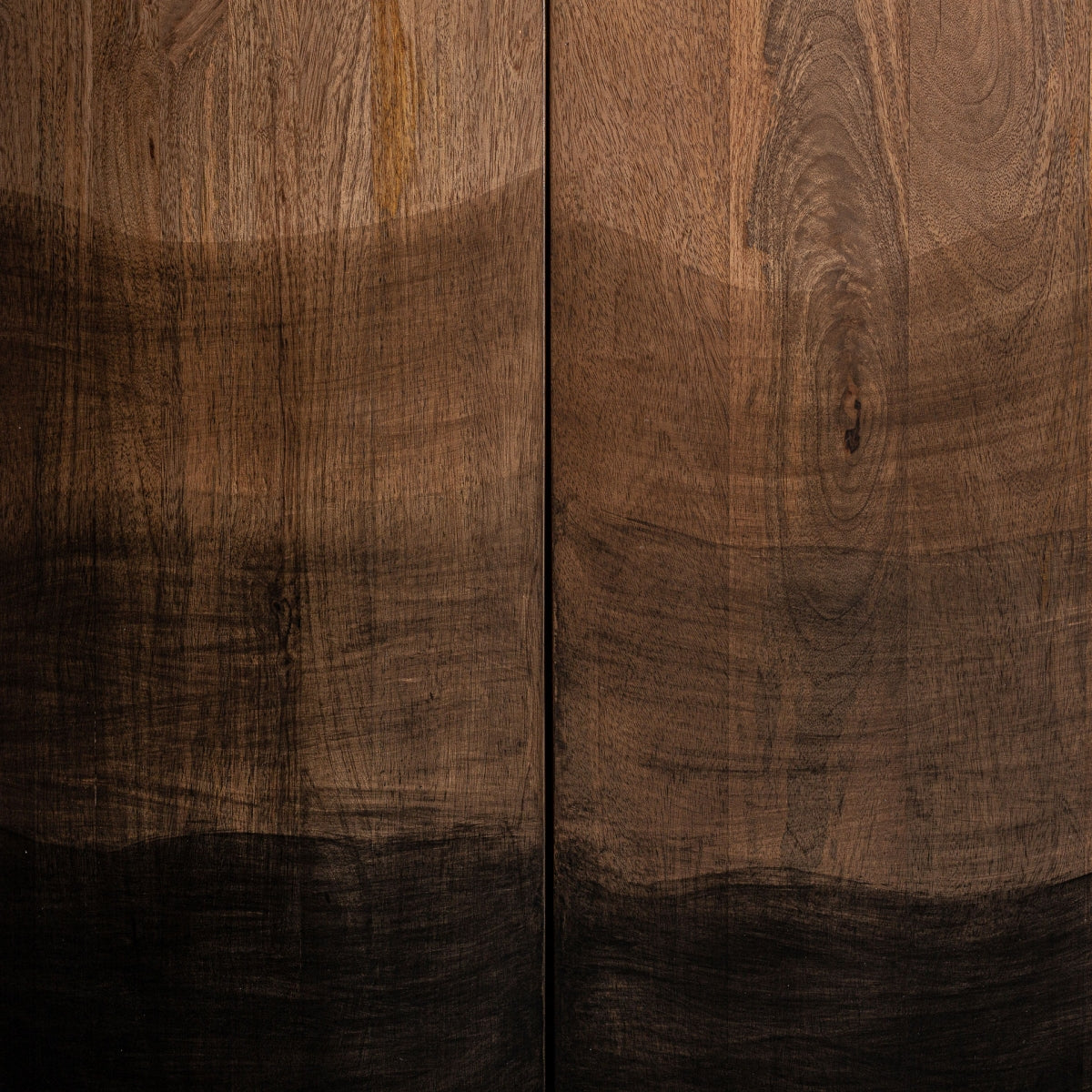 Елегантен бюфет, изработен от масивно мангово дърво с плот от естествен мрамор. Предната част включва зашеметяващ градиент от топли дървесни тонове до наситено черно, добавяйки дълбочина и характер. Перфектен акцент за изискан, съвременен интериор.