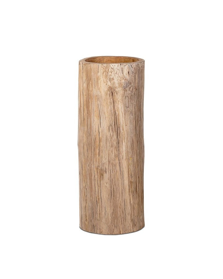 Вазата MIKA 80 принадлежи към семейството MIKA от подобни части на различни височини, за да улесни създаването на оригинални комплекти. Това е парче с размер 80 см височина и 18 см дълбочина, което предлага голяма гъвкавост при използването му. Това е ваза от естествено тиково дърво, което придава ефект на издълбан ствол, което прави всяко парче уникално в света. Размерът и размерите му позволяват да се използва както като контейнер за съхранение на видно място, така и като декоративен предмет, ваза за сухи букети или капак за саксия, стига парчето да се поддържа сухо. Това е артикул с висока естетическа стойност, който ще внесе естественост и стил в най-личните пространства.