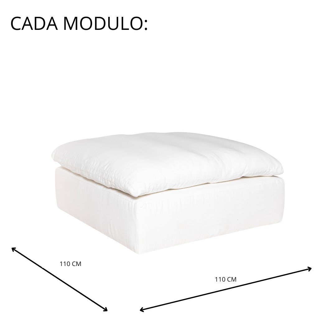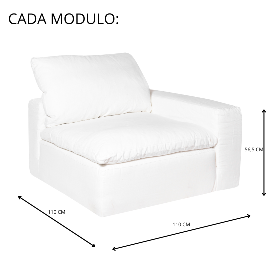 Този модулен диван, изработен от 100% естествен памук, внася усещане за чистота , светлина и комфорт във всеки интериор. Меката му текстура и чистият бял тон го правят универсален диван, който се вписва прекрасно в различни дизайнерски стилове: скандинавски – минимализъм, бохо – свобода, средиземноморски – свежест, модерен – елегантност, японски – хармония, френски – романтика. Модулната структура позволява гъвкава конфигурация, което го прави идеален за динамични и стилни домове.
