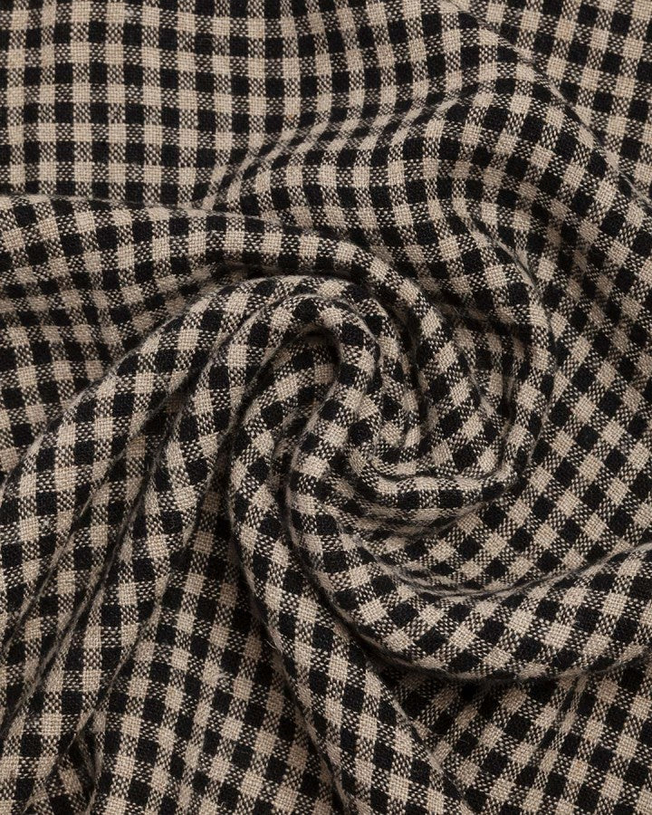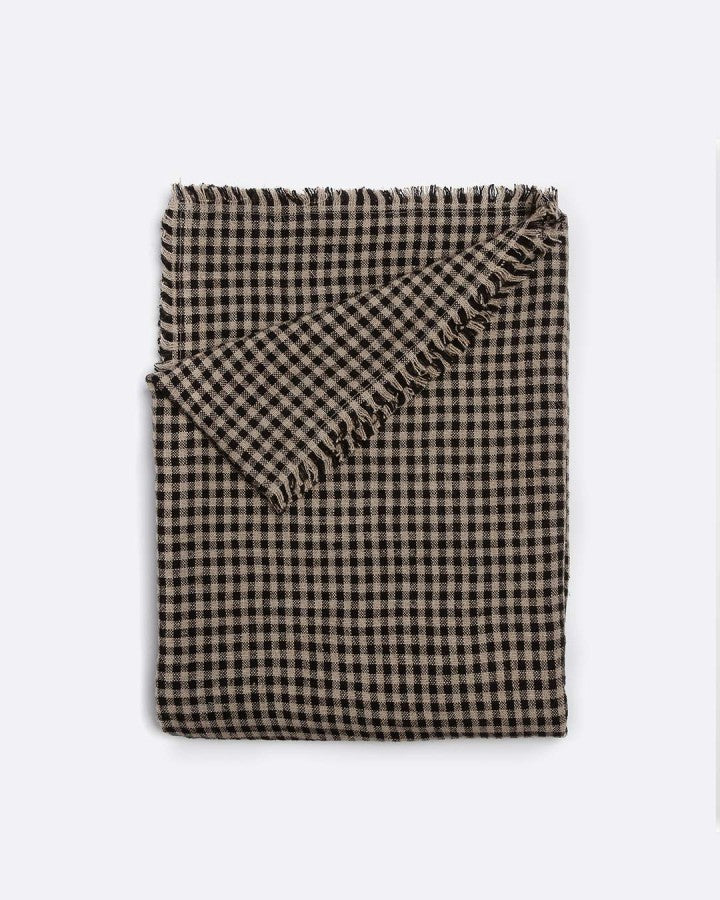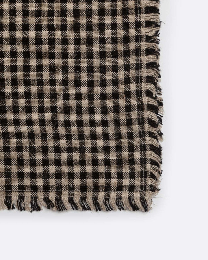 Покривка за маса MOGA, ръчно изработена от 100% естествен лен, изпран с камък, с тъкан черен дизайн на каре и черен кант.