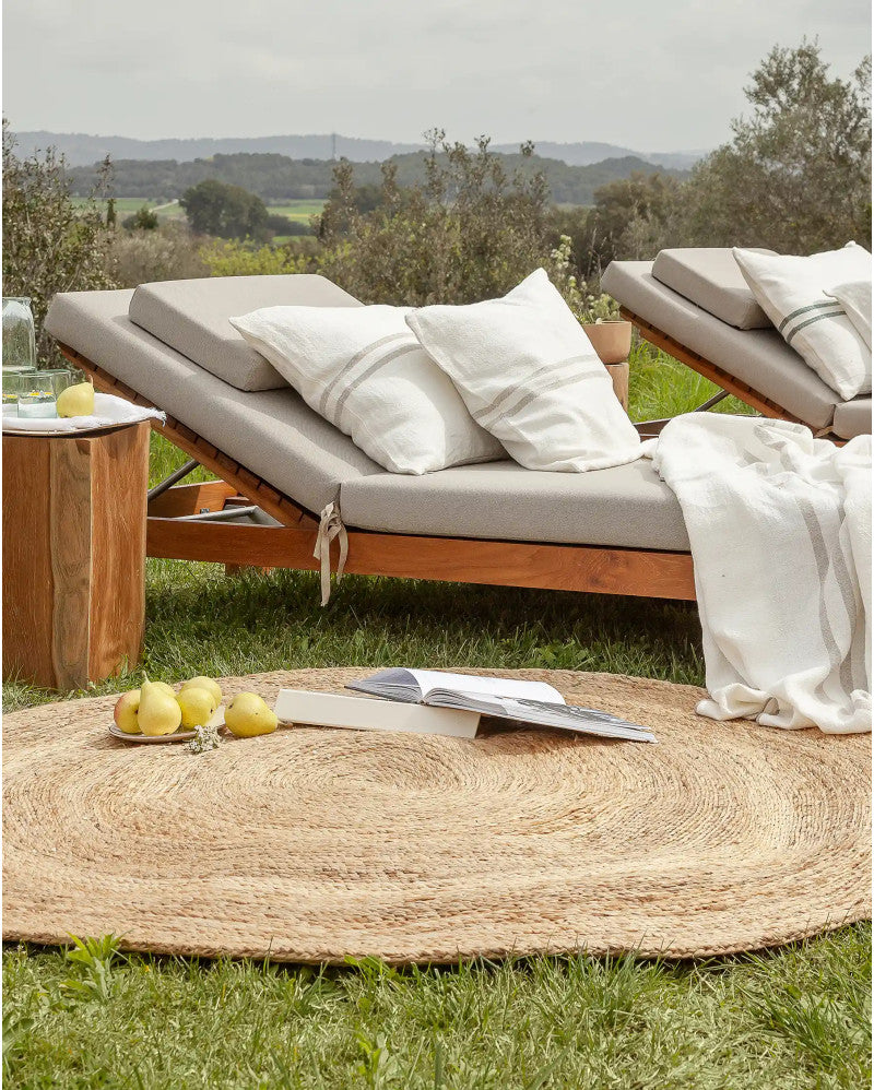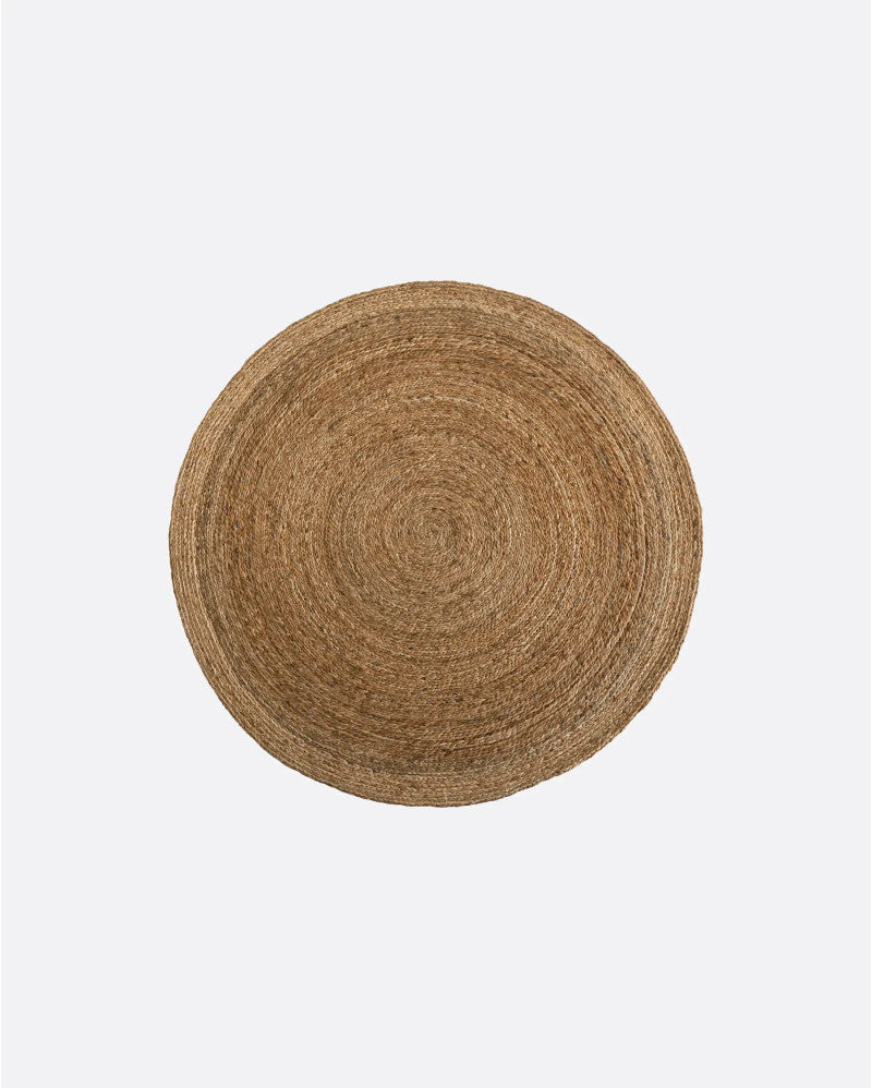 Килим NEIYYUR, ръчно изработен от 100% плоско тъкана юта. Кръгъл дизайн, който благодарение на своята простота и неутрални тонове може да се използва в различни интериори. Парче вечна изработка и много издръжливо. Предлага се в два размера.