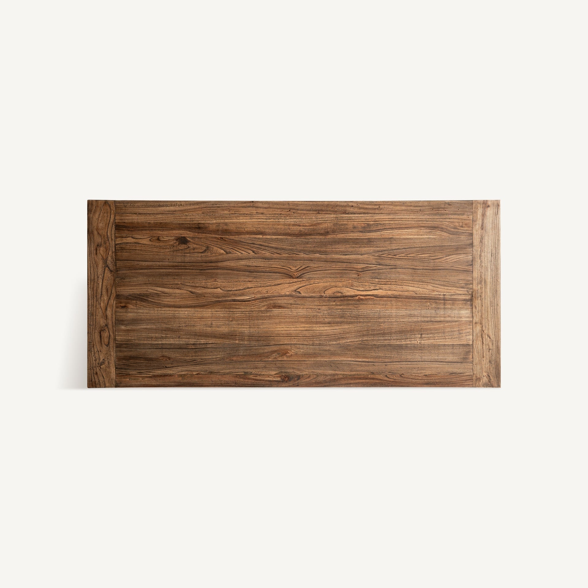 Трапезната маса Norvik от VICAL, изработена от кафяво брястово дърво, съчетава съвременен дизайн с автентичността на естественото дърво. Нейната здравина и вечен характер я правят идеалната мебел както за жилищни пространства, така и за строителни проекти, търсещи елегантност и издръжливост.