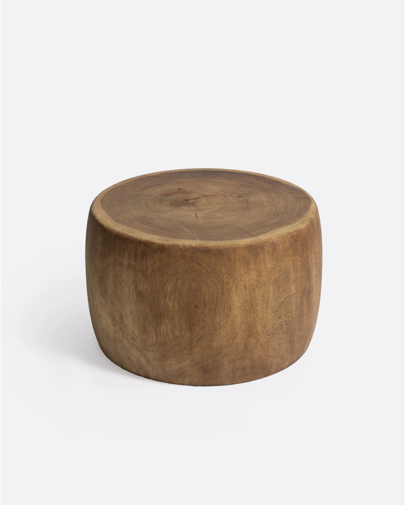 OMAYA е скулптурна странична маса, издълбана от единичен блок суарско дърво, напълно ръчно завършена и изгладена, за да изведе естествената красота на зърното и топлината на тоновете. Суар дървото е жив материал, който се развива с времето и условията на околната среда, което може да доведе до появата на малки отворени ивици или леки промени в цвета. Това е напълно нормално и е знак за неговата автентичност и естествен произход, засилвайки изключителния и уникален характер на всяко парче. Тази колекция е още един пример за ангажимент за подчертаване на чистотата на внимателно подбраното дърво, зачитайки неговата текстура и органична форма, доколкото е възможно.