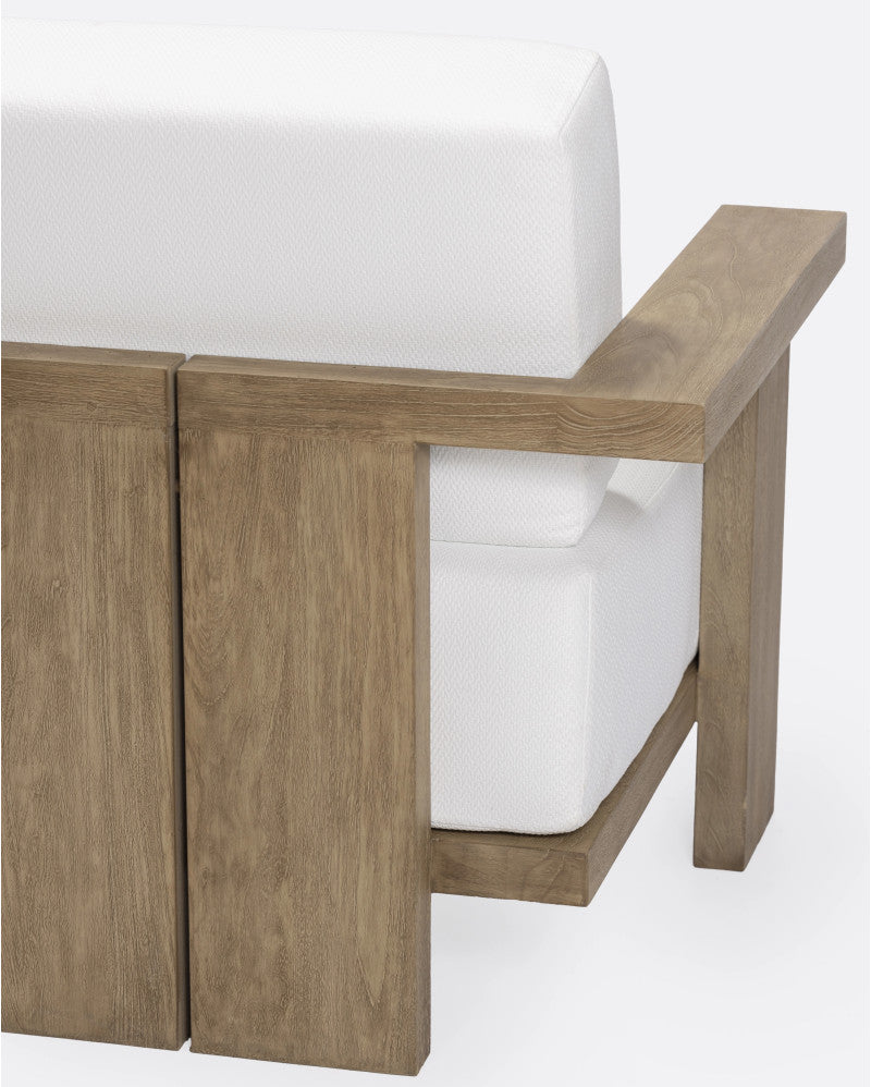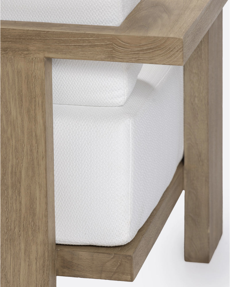 PANAJ е може би най-премиум колекцията в нашата гама дивани за открито. Всяка от дървените секции, съставляващи конструкцията, е с изключителна дебелина от 4 см, осигурявайки ненадминато ниво на здравина и стабилност. Неговият отворен дизайн, с изчистени, прави линии, няма излишни елементи и използва минимален брой части, за да състави рамката, което й придава забележителна визуална лекота въпреки изключителната й здравина. Седалката и облегалката имат обемни, щедро тапицирани възглавници, които пасват на основата с геометрична прецизност и предлагат оптимален комфорт.