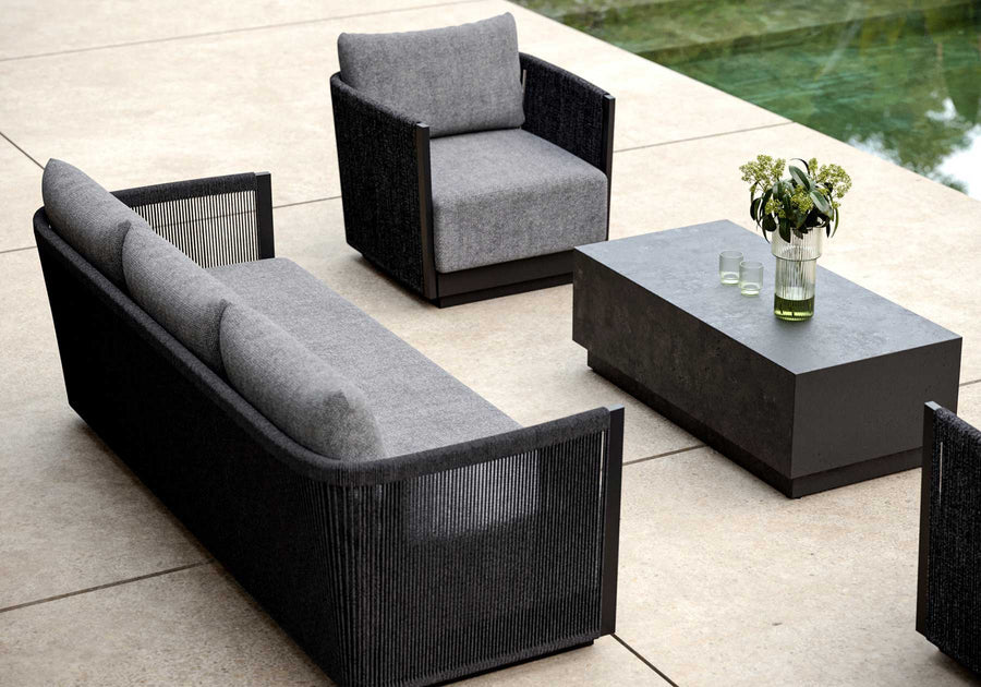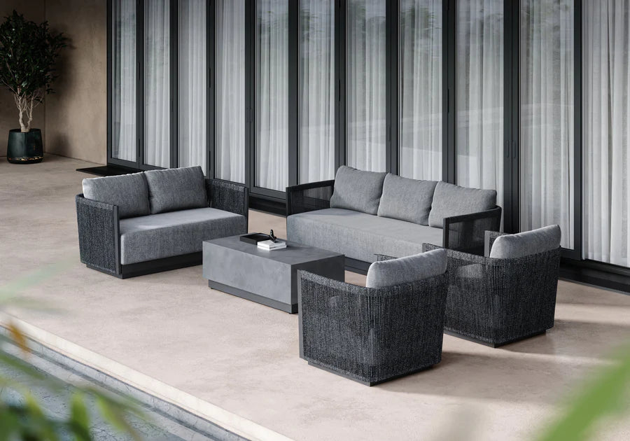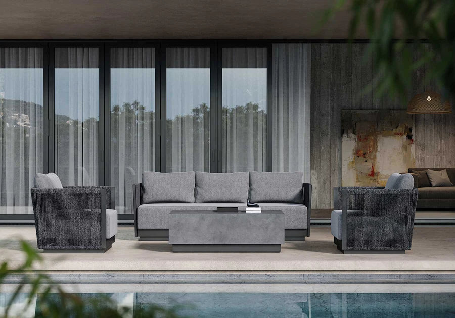 - Холната гарнитура се състои от троен диван, два единични фотьойла, средна холна маса и малка холна маса.