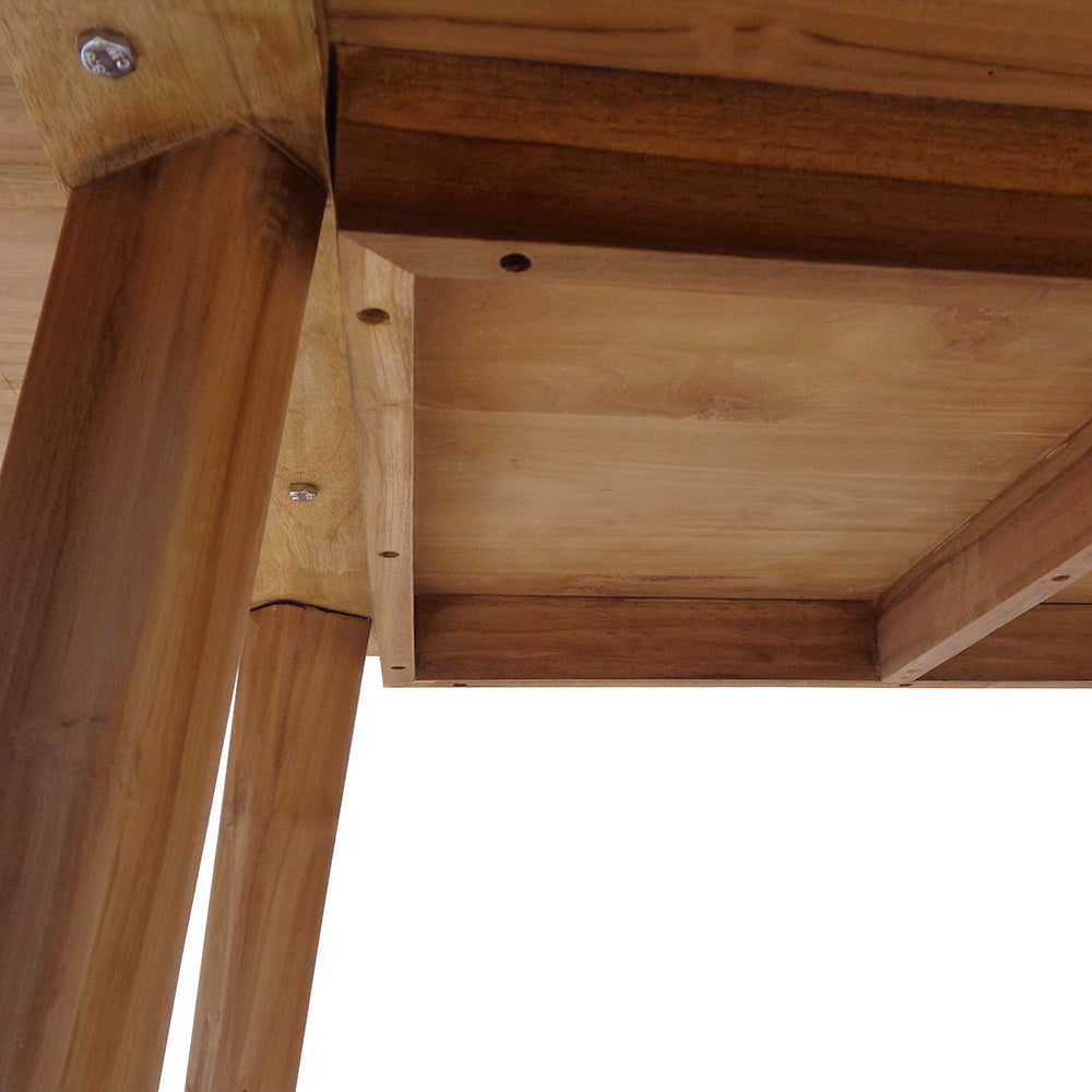 Тази здрава маса от тиково дърво е идеална за забавления и хранене на открито. Масата е устойчива на атмосферни влияния и е проектирана да издържи години.