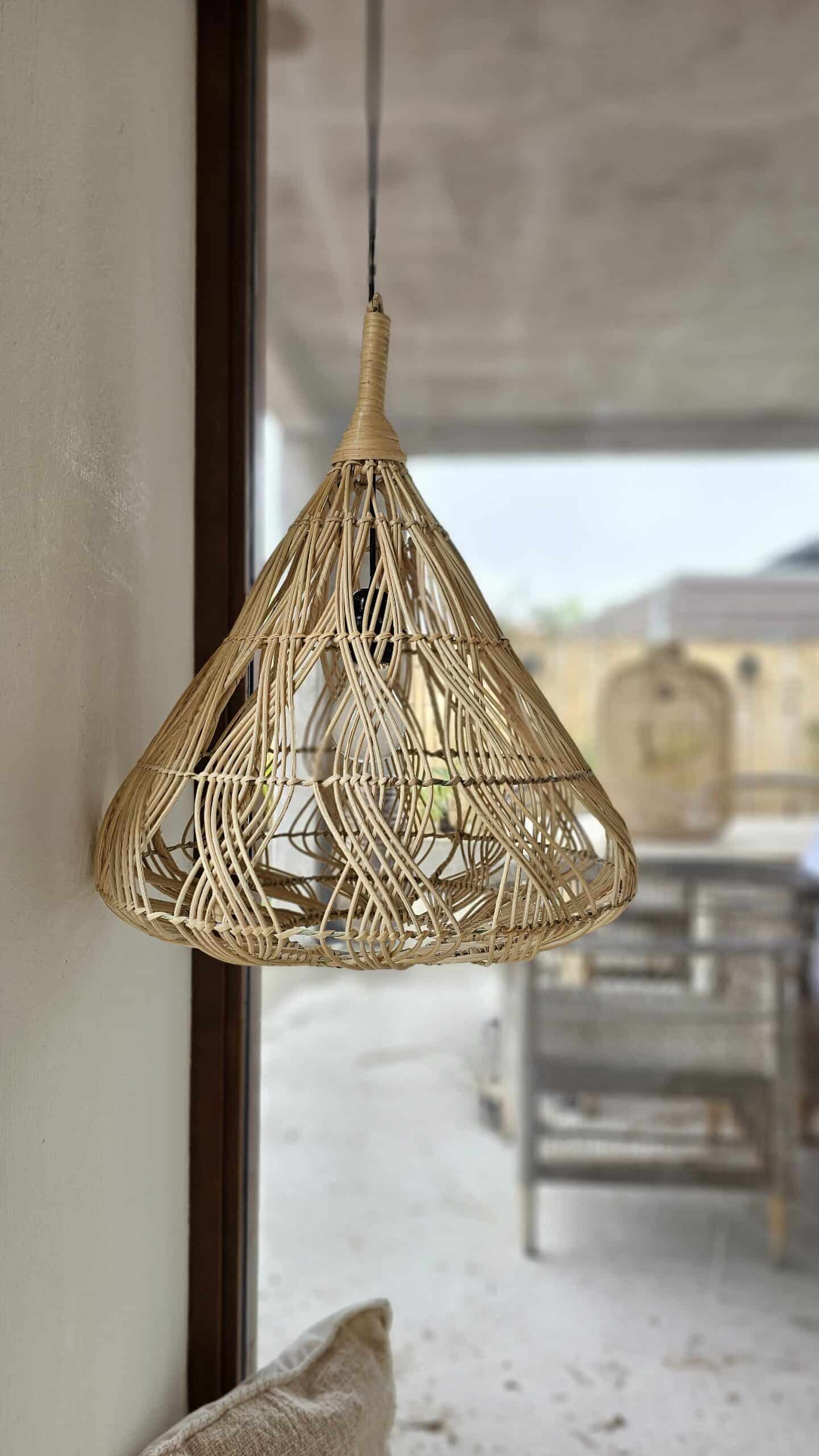 Това е елегантна и по-голяма версия на египетската лампа. Тази форма е малко по-вълнуваща от правите ратанови висящи лампи, така че изглежда страхотно и в скучен ъгъл. Тази лампа включва арматура, кабел с ключ и щепсел, ако искате да я окачите на тавана, отрежете я наполовина!