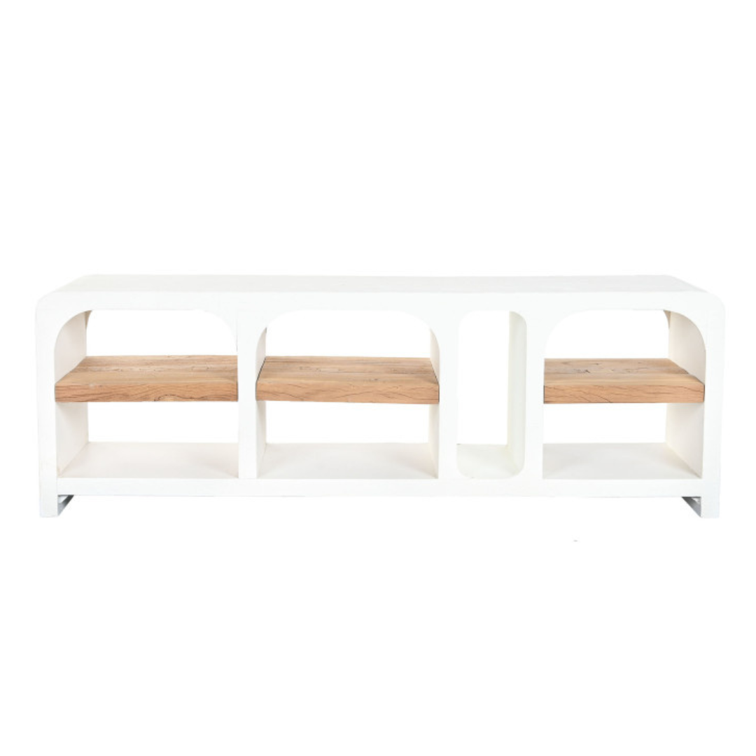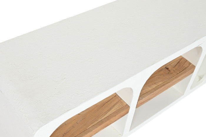Изработен от рециклирана мангова дървесина от устойчиви източници, този телевизионен шкаф съчетава естествена топлина с минималистична елегантност. Богатите шарки на шарките и фините тонални вариации на манговата дървесина придават дълбочина и характер на всяка мебел, докато изчистените линии и балансираните пропорции предлагат вечен силует, подходящ за съвременен интериор.