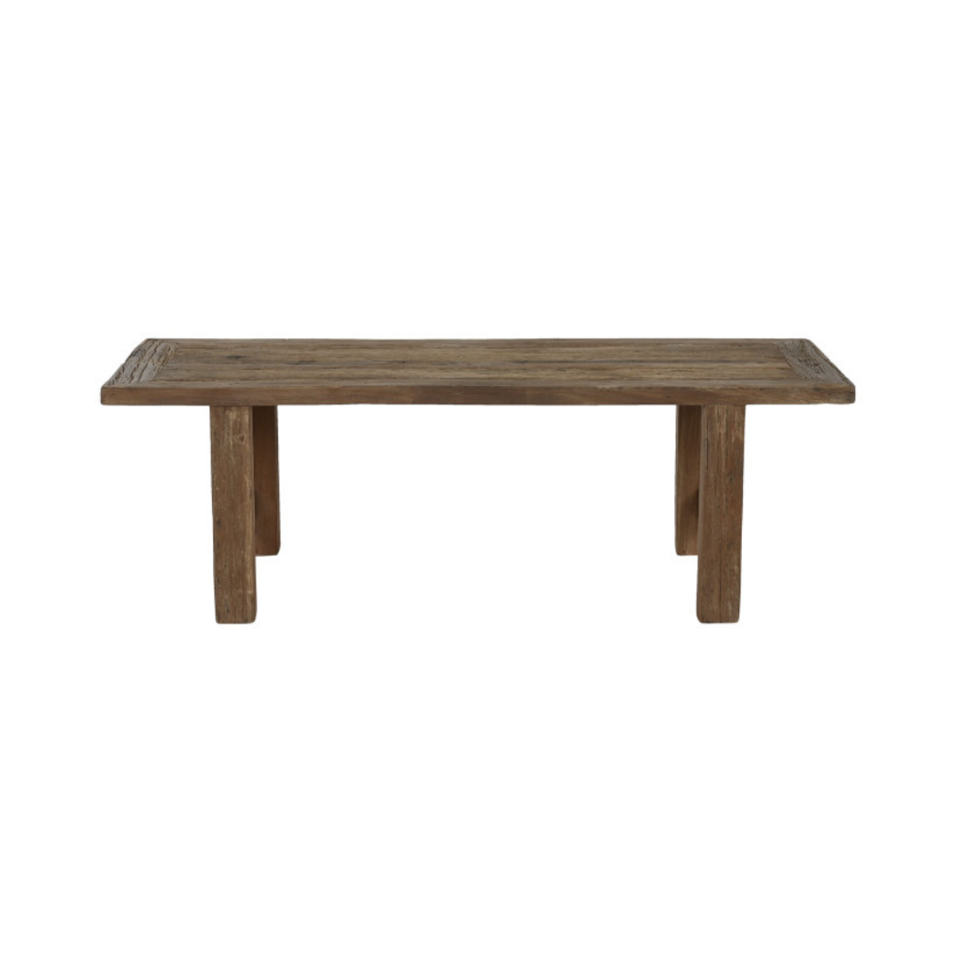 Изработена от масивен рециклиран тик, тази масичка за кафе съчетава издръжливост с уникални естествени текстури. Подходяща е както за вътрешна, така и за външна употреба, благодарение на естествената издръжливост и устойчивост на атмосферните влияния на тиковото дърво.