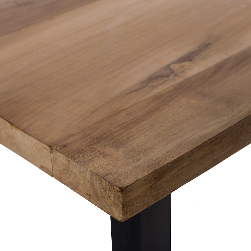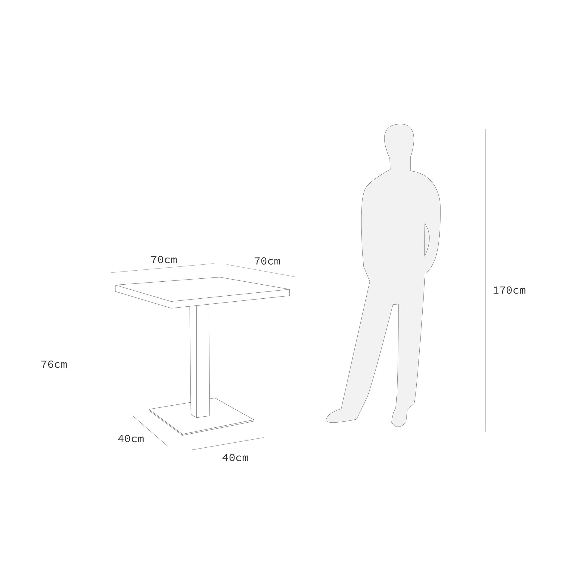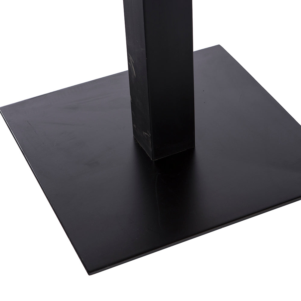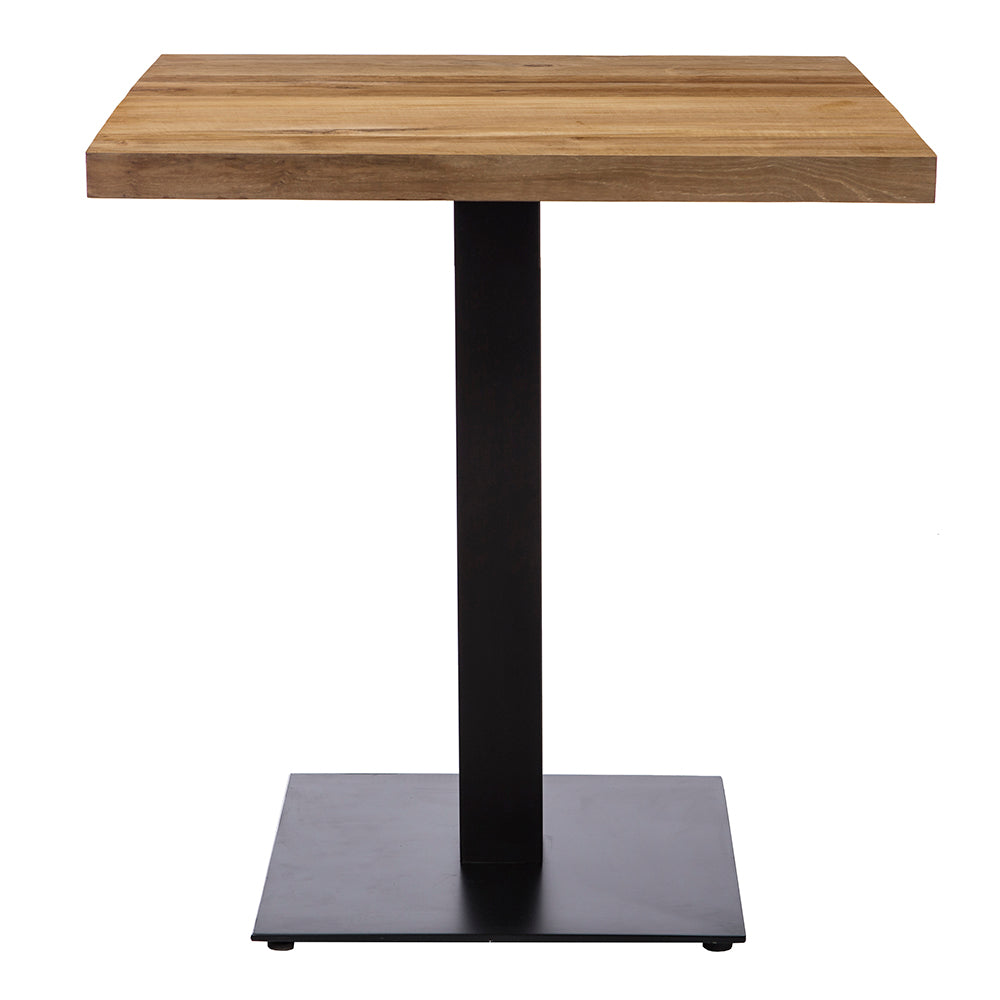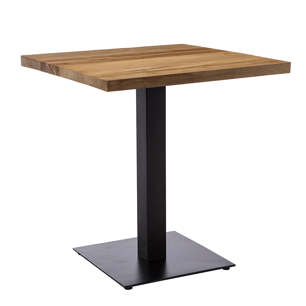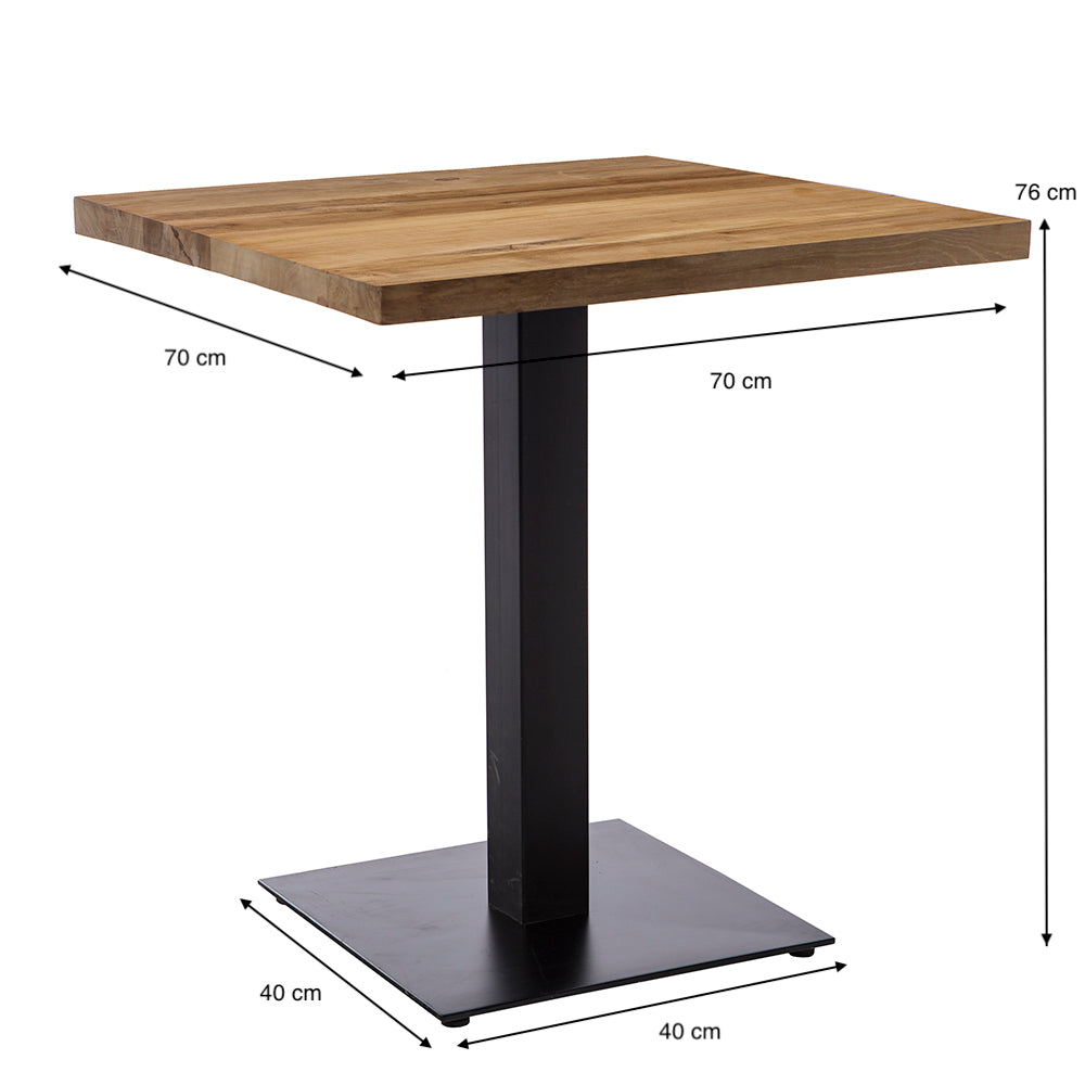 ЖЕЛЕЗНАТА МАСА SQU S има основа 40 см х 40 см и дебелина 3,5 см. Конструирана с железен крак и плот от тиково дърво, тази маса се предлага в черни и естествени цветове. Изисква се сглобяване.