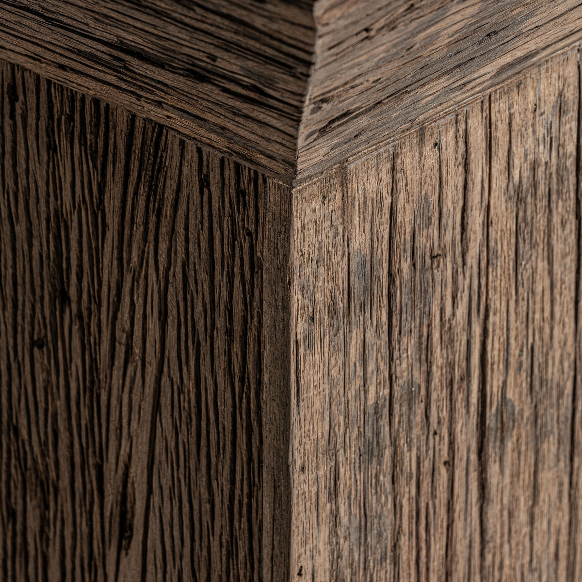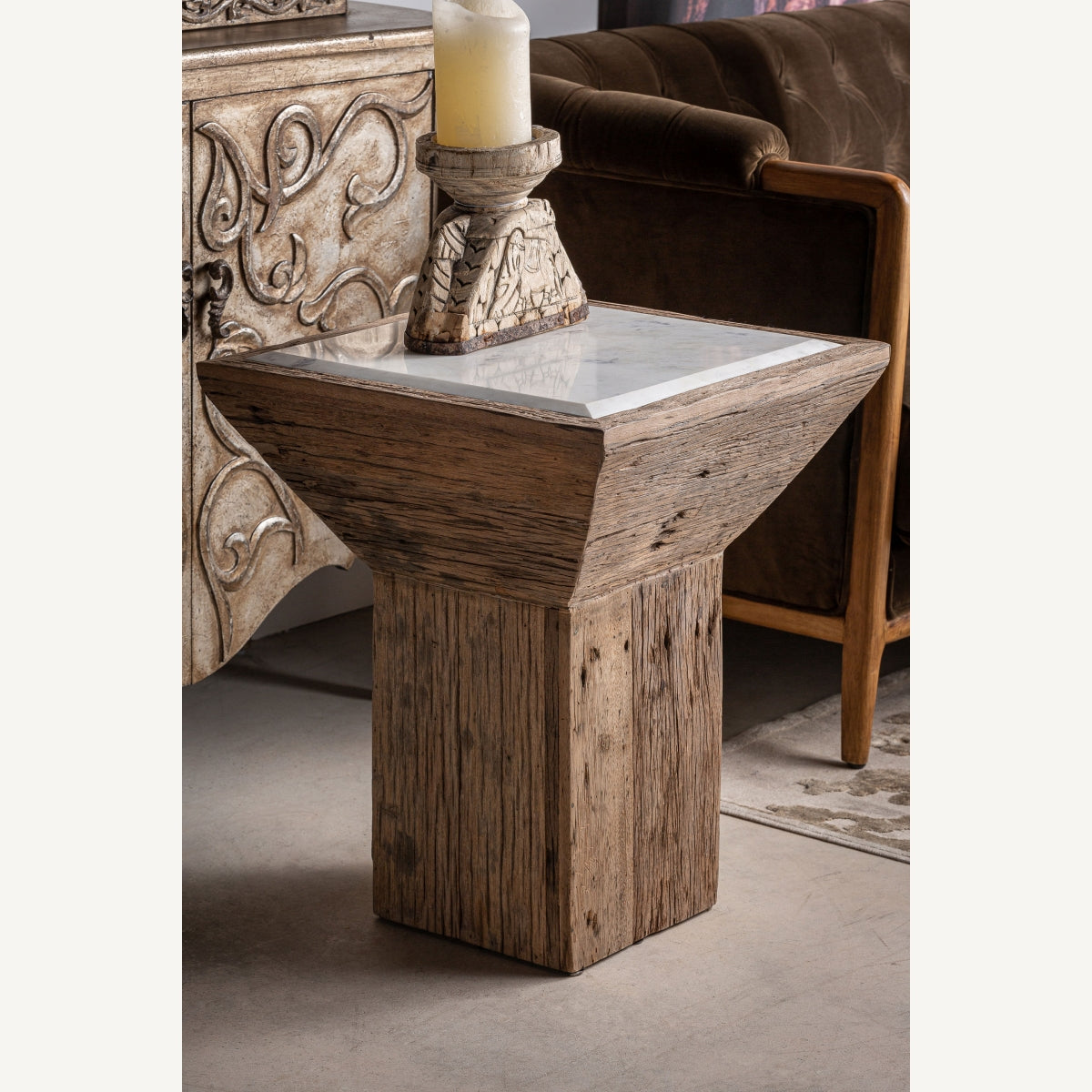 Помощна маса Самсун, стил етно, изработена от регенерирано дърво в кафяво с изтъркан финиш, комбиниран с бял мрамор.