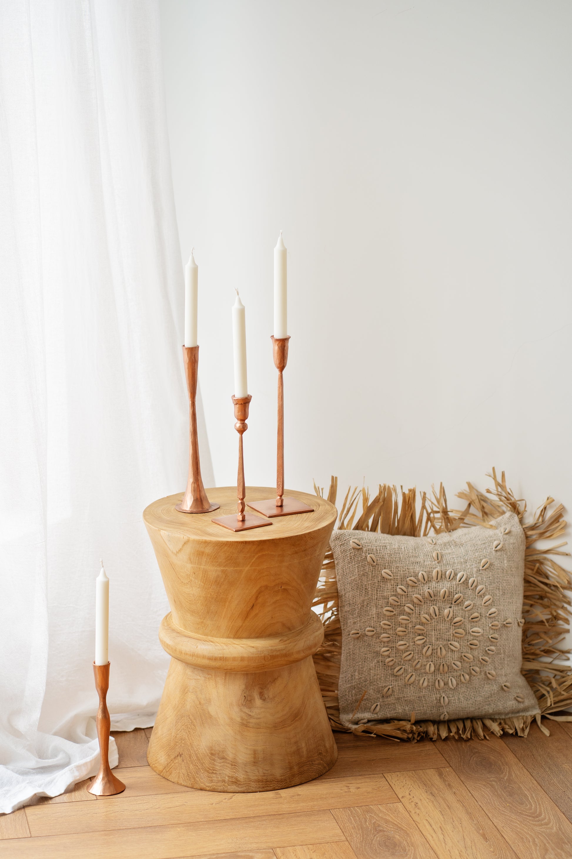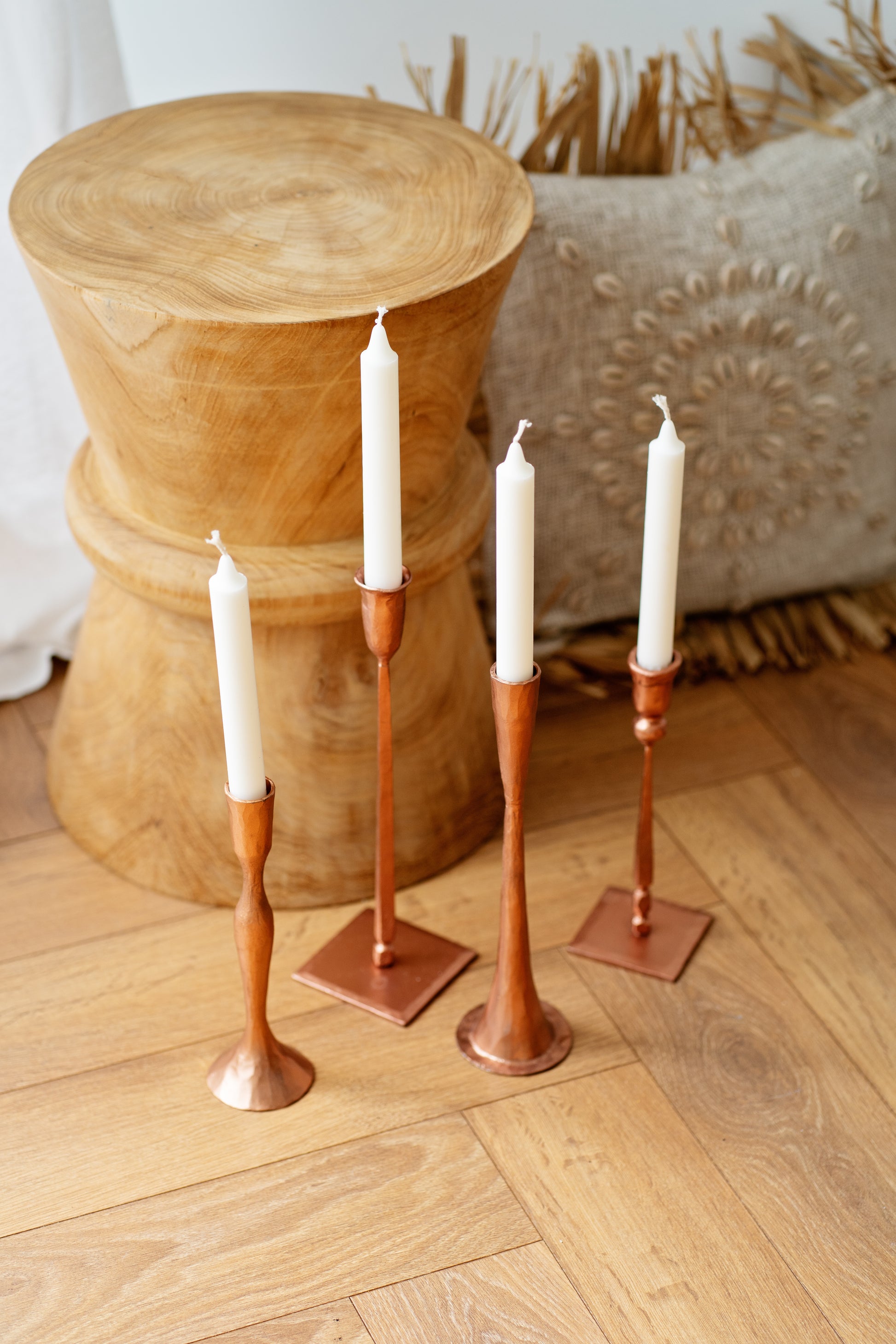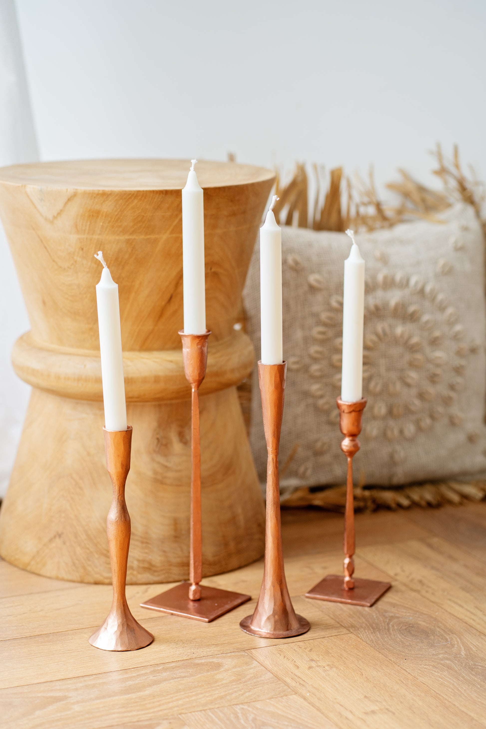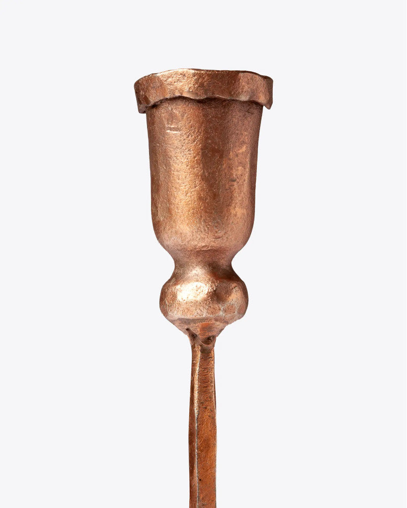 - Ръчно изработен меден свещник от желязо. Всяко ръчно изработено парче е уникално и малко по-различно от останалите, добавяйки стил и ексклузивност към всеки дом. Подходящ за стандартни свещи с диаметър 2 см. Предлага се в четири различни стила и размера