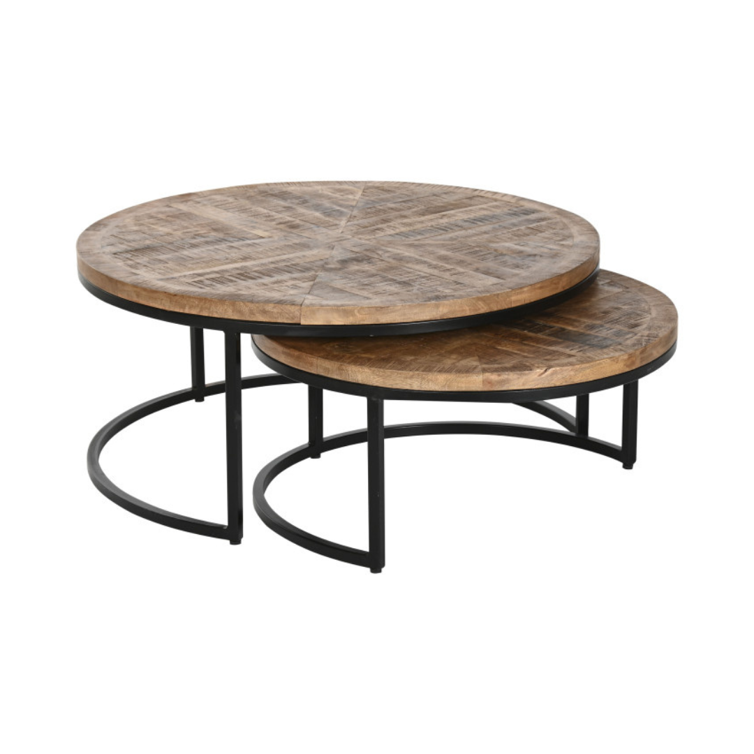 Този комплект от две масички за кафе от мангово дърво предлага гъвкав стил и издръжливост както за вътрешна, така и за външна употреба. Изработени от здраво мангово дърво, всяка масичка се отличава с гладко покритие, което подчертава естествената текстура на дървото, като същевременно е устойчива на износване от външни влияния. Допълващите се размери осигуряват гъвкави възможности за подреждане, което ги прави идеални за подобряване на дневни, вътрешни дворове или градински пространства с практична елегантност и дълготрайна привлекателност.