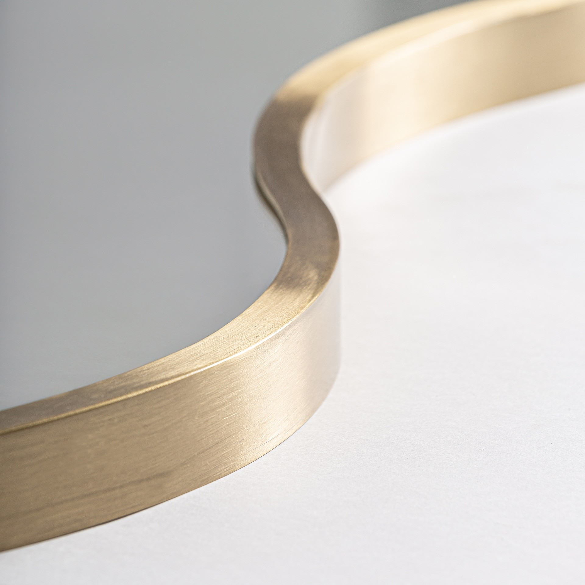 Огледалото Rinhe, изработено от златиста стомана и стъкло, представя изискана естетика в стил арт деко. Творение на VICAL, което носи светлина и елегантност.