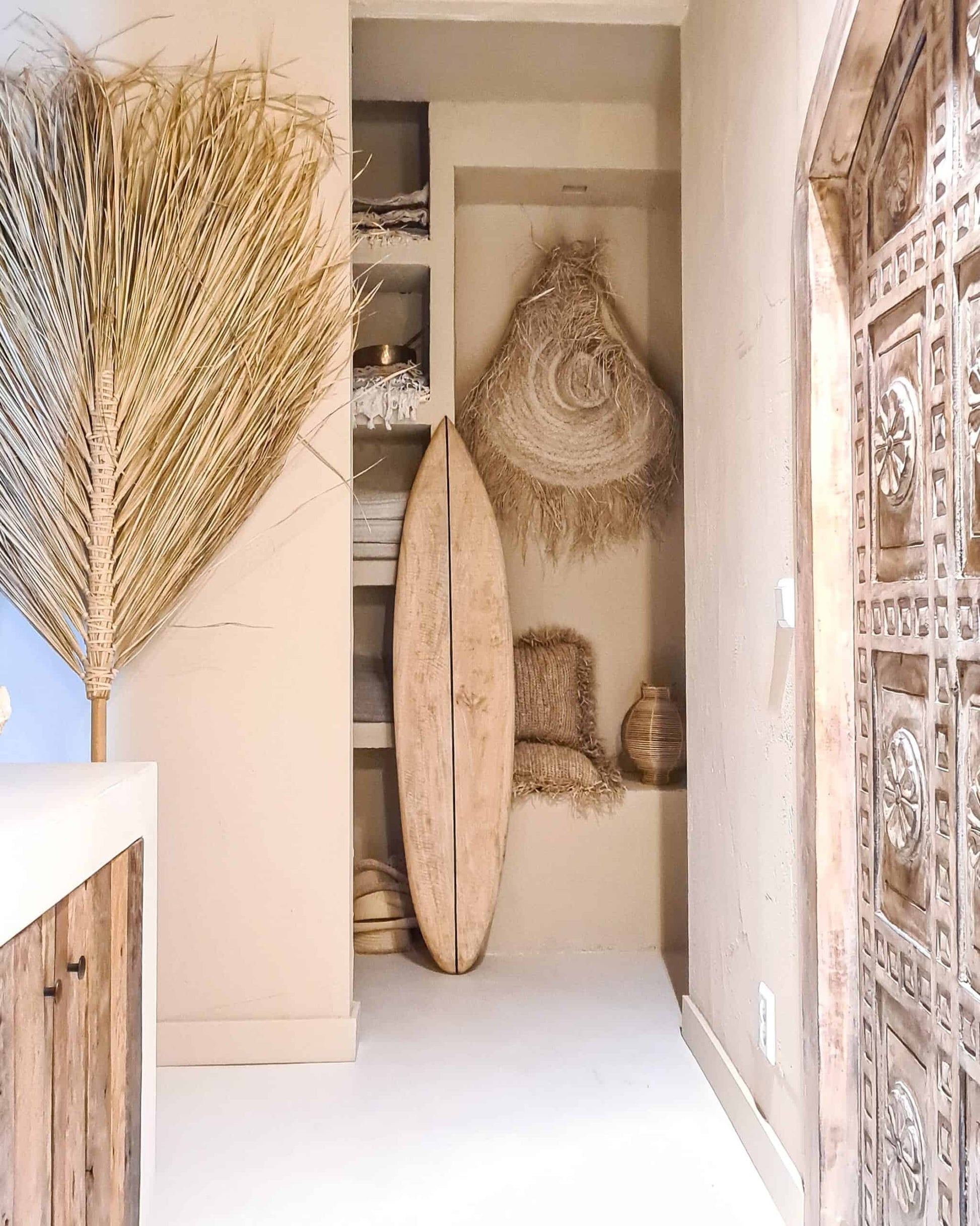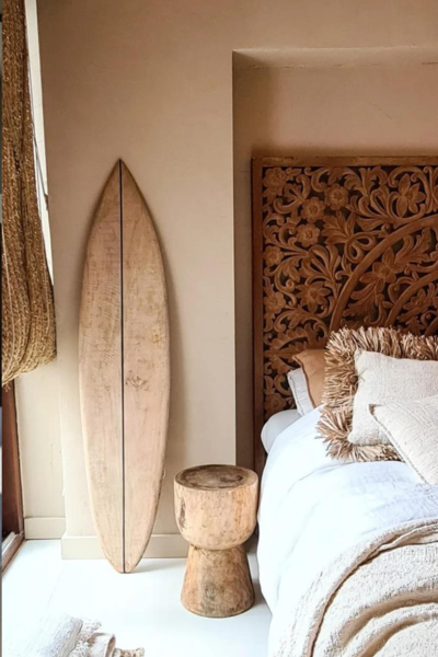 Тази дъска наистина привлича вниманието! Декоративна дъска за сърф до вашата стена. Тази дъска е необработена и следователно има оригиналния дървесен цвят.