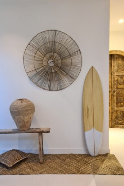 Тази дъска наистина привлича вниманието! Декоративна дъска за сърф до вашата стена. Празна дъска, която изглежда е потопена в бяла боя.