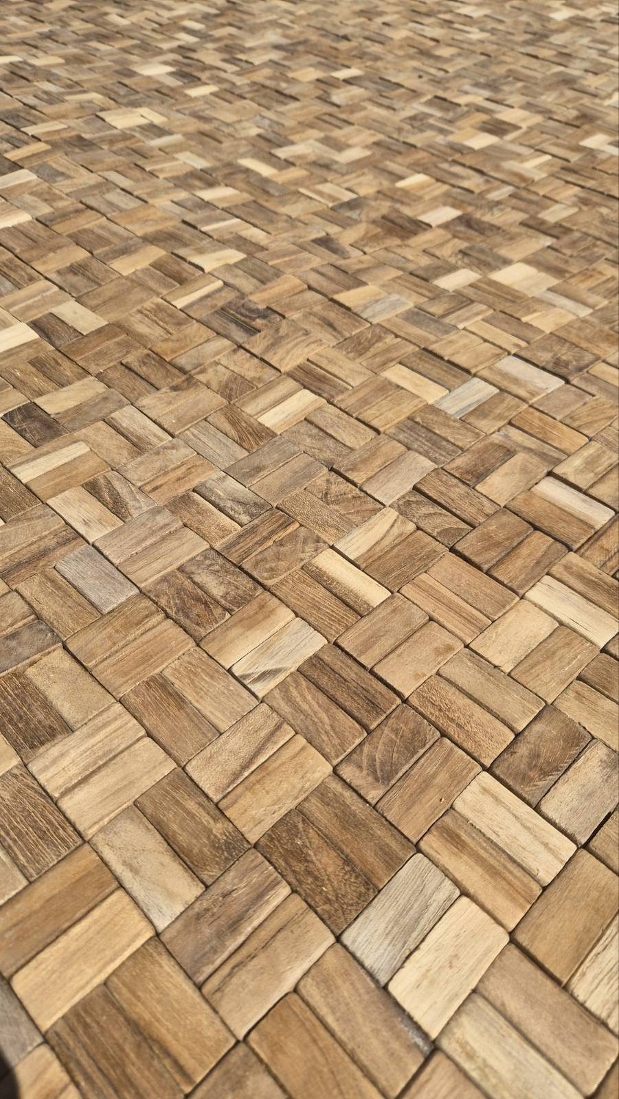 Килимът от тиково дърво е луксозно и издръжливо решение за външни пространства, съчетаващо естествена красота с устойчивост. Изработен от висококачествени тикови дъски, той предлага топъл, елегантен външен вид с характерна дървесна текстура и златисто-кафяви нюанси.