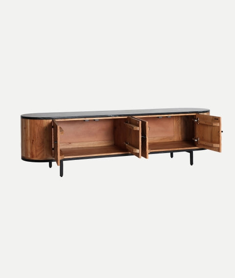 Открийте стойката за телевизор Tira, шедьовър на дизайна, който съчетава елегантността на мрамора с топлината на естественото акациево дърво. Тази разглобяема мебел за всекидневна е не само идеална опора за вашия телевизор, но и изключително естетическо допълнение към вашата трапезария. Tira, повече от обикновена стойка за телевизор, е бюфет, който предефинира концепцията за бюфет в мебелите за всекидневна, съчетавайки функционалност и изкуство.