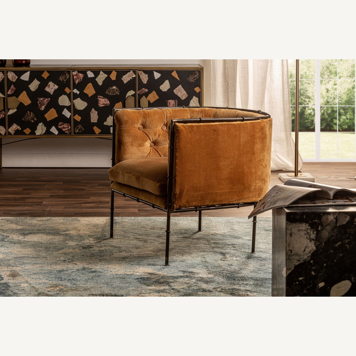 Фотьойл Trivigno, стил винтидж, изработен от желязо в цвят охра, комбиниран с кадифе и дунапрен.
