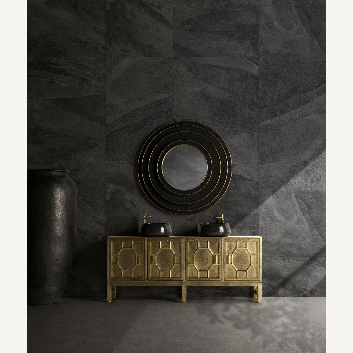 Умивалник capricornio, стил съвременен, изработен от мрамор в черно с ярък финиш.