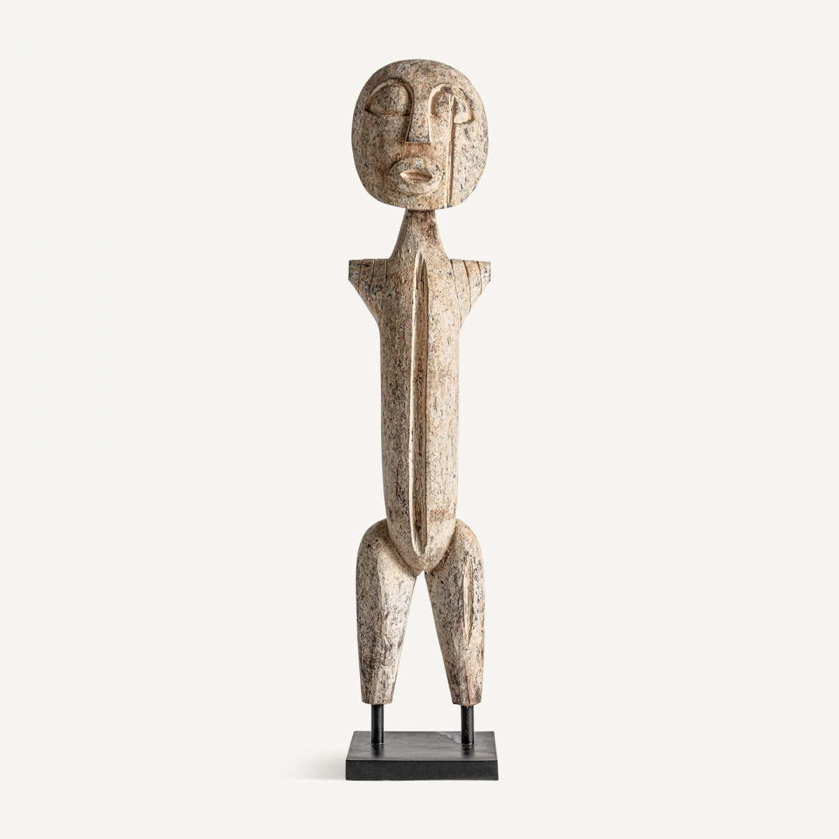 Декоративна фигура, стил етно, изработена от тропическо дърво в черен цвят, комбинирано с желязо.