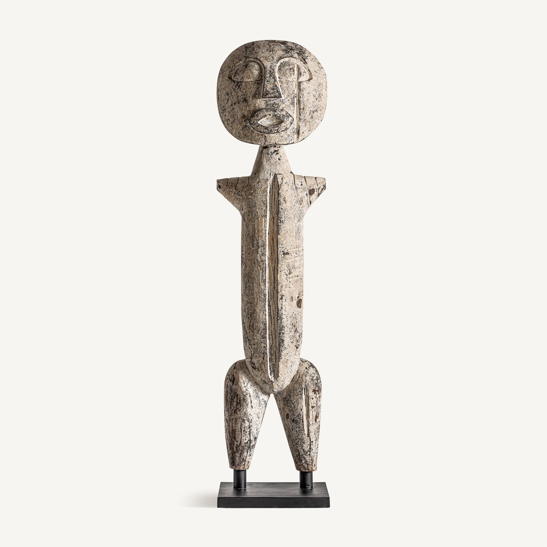 Декоративна фигура, стил етно, изработена от тропическо дърво в черен цвят, комбинирано с желязо.