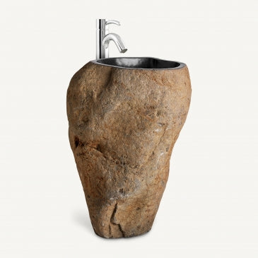 УНИКАЛНАТА МИВКА SCORPION е ръчно изработена каменна мивка, проектирана във винтидж стил. Наситеният ѝ кафяв цвят с матово покритие добавя вечен характер и топлина към всяка баня. Умело изработена от занаятчии, тази мивка съчетава издръжливост с античен чар, което я прави идеален централен елемент за тези, които търсят комбинация от функционалност и класически дизайн.