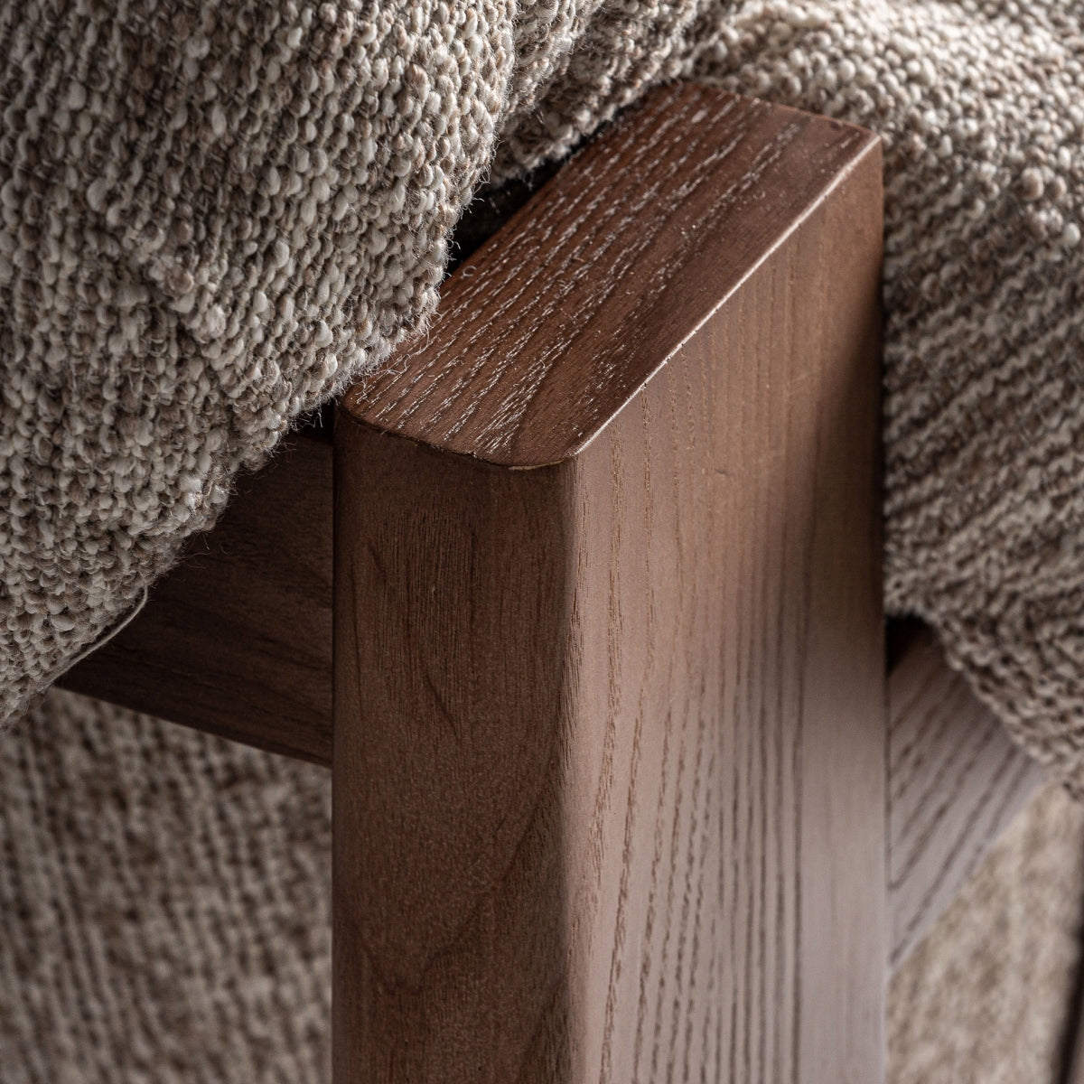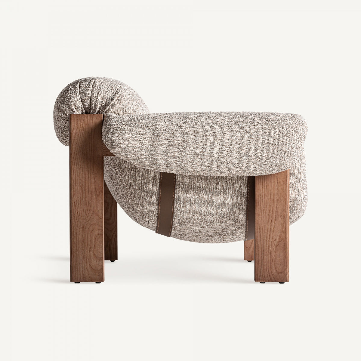 Фотьойл Узнач, стил съвременен, изработен от борова дървесина в кафяви тонове с мраморно покритие, комбинирано с кафяв полиестер и дунапрен.
