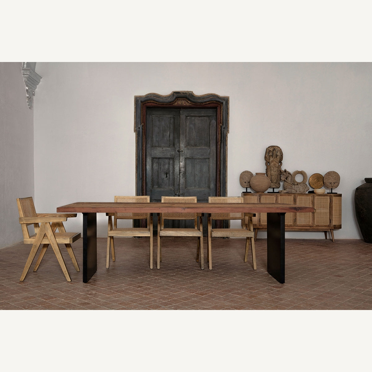 Трансформирайте трапезарията си с трапезната маса Uzor от VICAL Home. Нейните щедри размери от 250x104x76 см са идеални за провеждане на големи тържества. Здравата дървесина Shorea в хармония с железни акценти, както в черно/естествено, предлага естетика на съвременна здравина и елегантност.