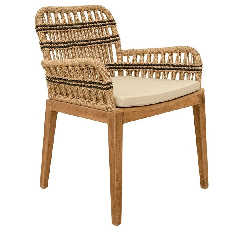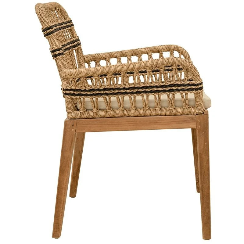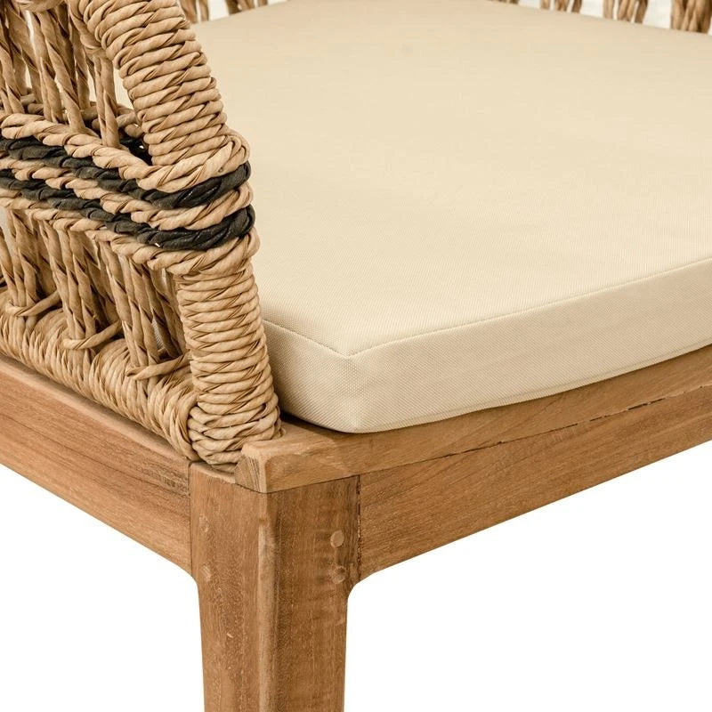 Удобен стол от тиково дърво и синтетично въже със слънцезащитен текстил . Подобрете декорацията на вашия дом, кафе или ресторант с този елегантен стол с фини линии, завършен в черно. Естествено покритие