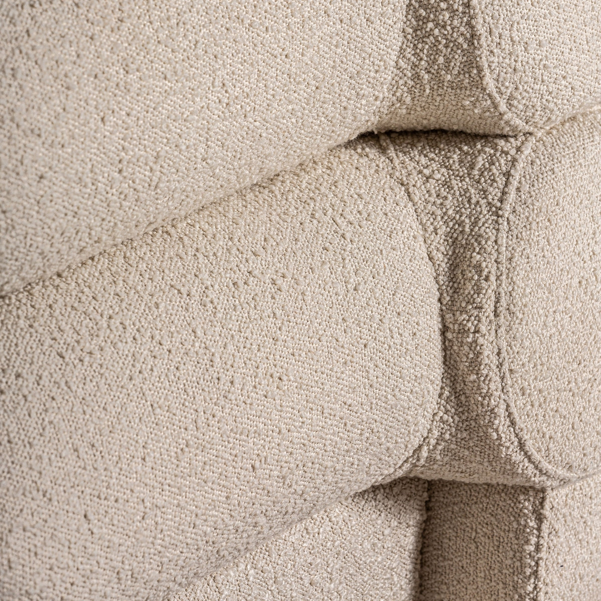 Легло VICAL, стил съвременен, изработено от борова дървесина в почти бяло, комбинирано с памук букле. Продуктът се разглобява.