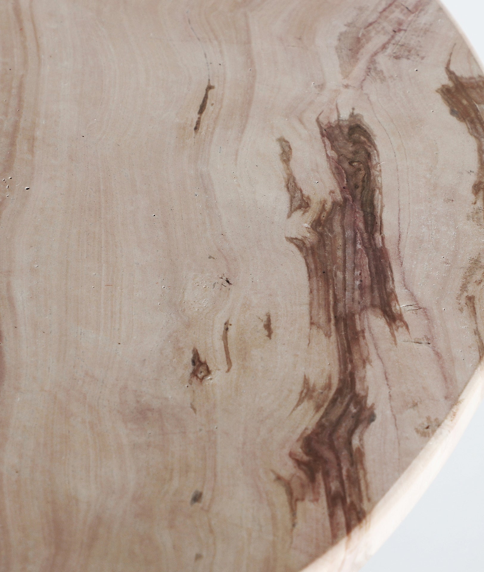 Страничната маса VRADS е многофункционална и изискана мебел, с изваяна основа от масивна дървесина и деликатен плот от естествен камък. Идеална като акцент в дневни, спални или специални кътчета, нейният органичен дизайн добавя ексклузивен щрих към всяко пространство.