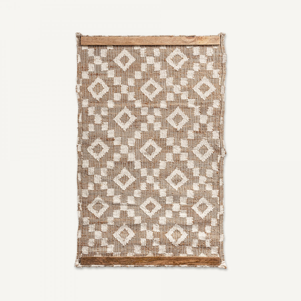 Стил бохо, изработен от мангово дърво в светли нюанси, съчетано с памук и юта. Сгъваем продукт.