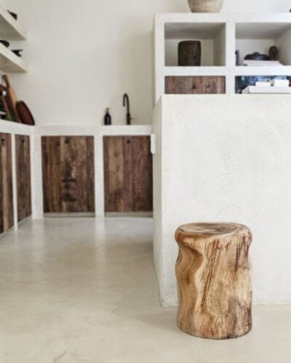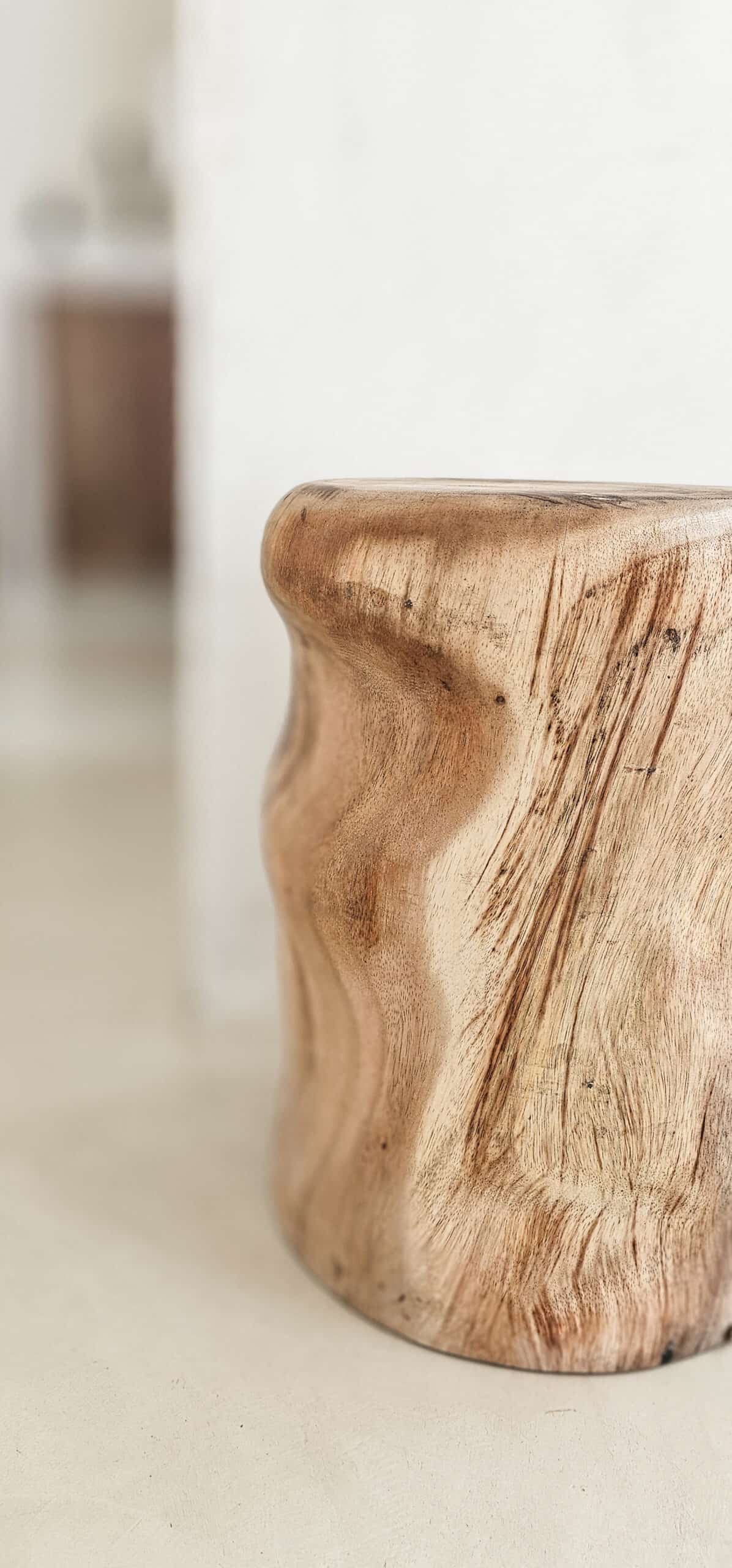 Тази табуретка, която може да функционира много добре като странична масичка или масичка за кафе, е малко по-масивна по форма и са създадени някои „неравности“, което му придава много специален външен вид.