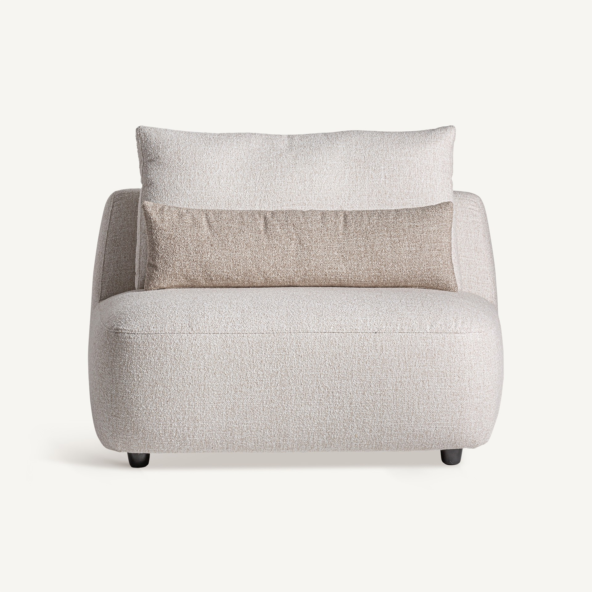 Обгръщащ дизайн и щедри пропорции. Централният модул Wingles се отличава с дървена конструкция, почти бяла полиестерна тапицерия и черни железни крака. Възглавници, пълни със смесени гъши пера, канят за релаксация.
