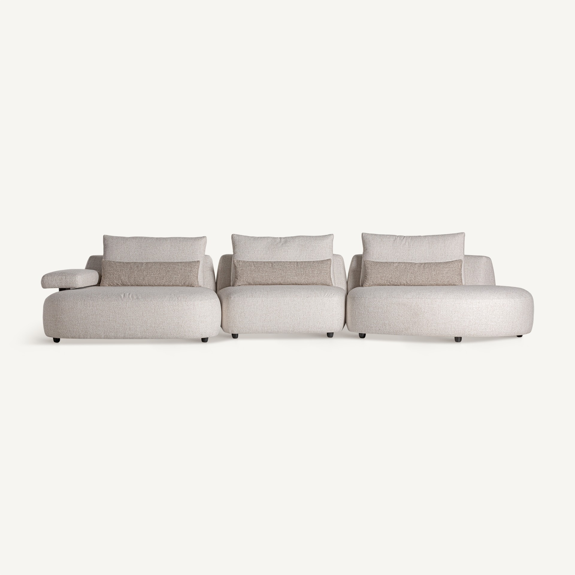 Модулът Win отразява перфектния баланс между комфорт и елегантен дизайн. Тапициран с мек бежов или почти бял полиестер с желязна структура, той е идеалната основа за създаване на модулни композиции със спокойно и изискано усещане. Пухените възглавници допълват комфортното изживяване.