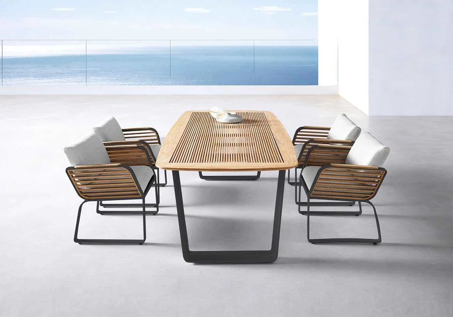 - Изработен от устойчиво на открито тиково дърво и алуминий.