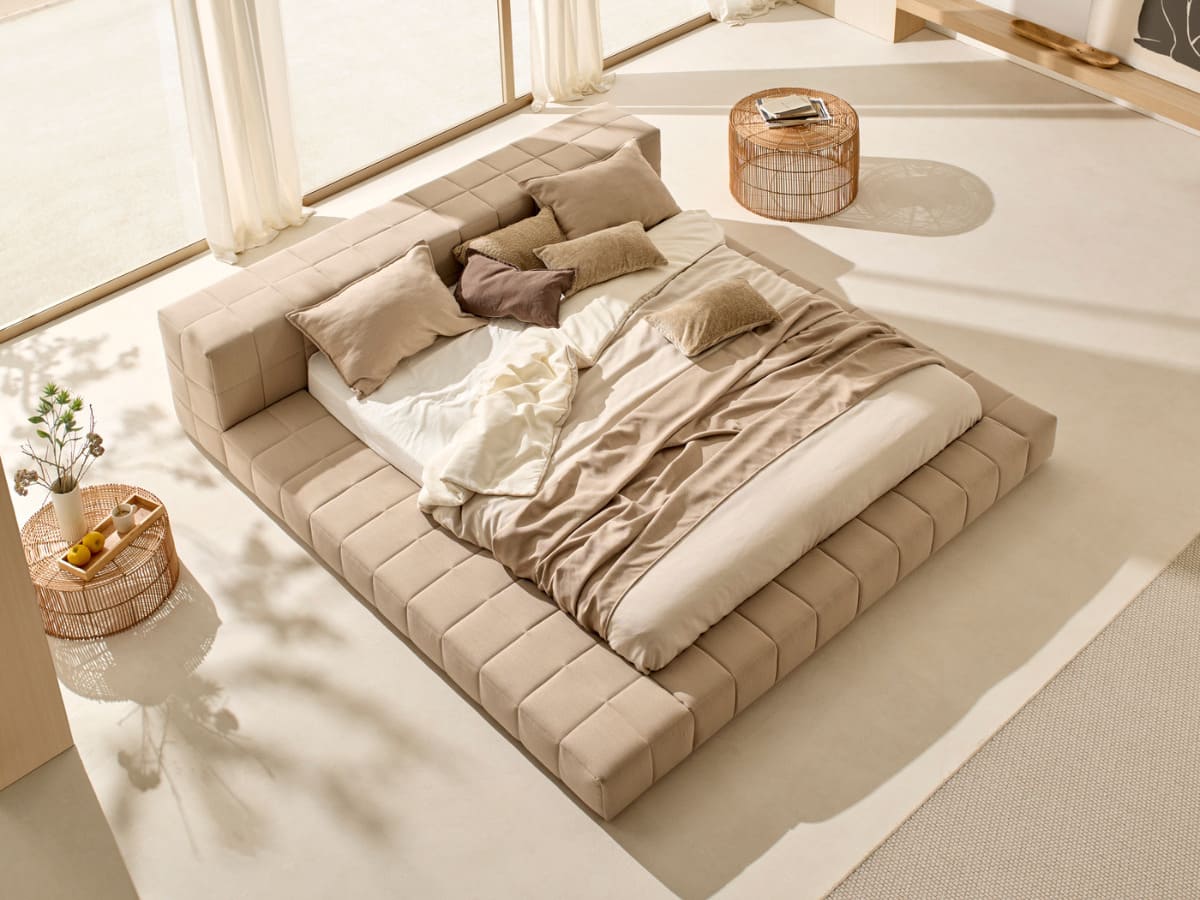Леглото York, с модерния си дизайн и прави линии, придава на спалнята индивидуалност и елегантност. Ватираните детайли около него вдъхват комфорт и мекота, канейки ви към почивка. Произведено в Италия.