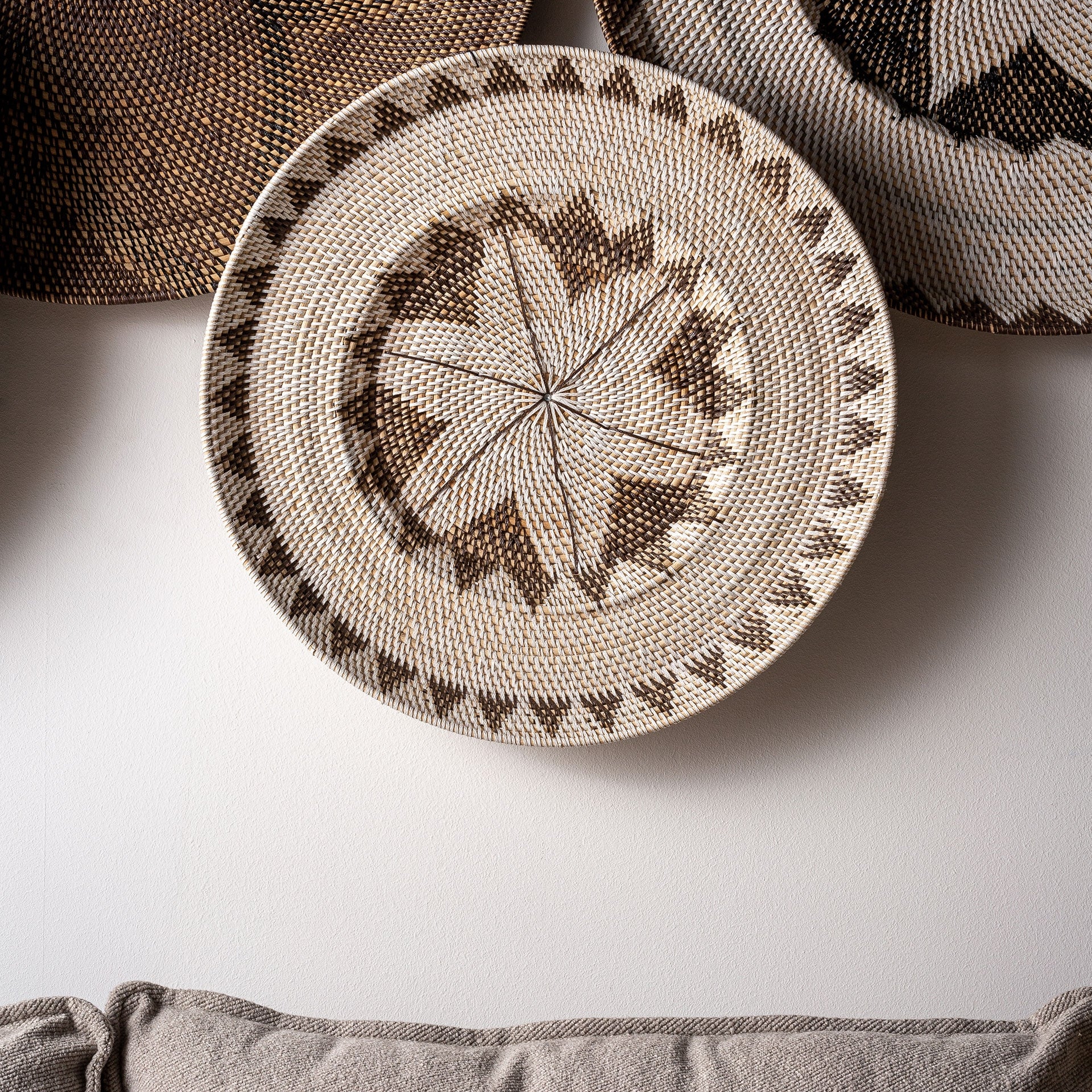 Стенна картина зирба, етнически стил, изработена от ратан в кафяво.