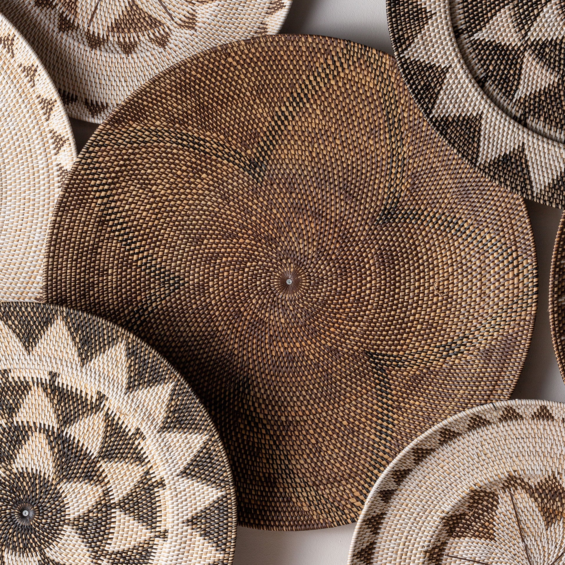 Стенна картина зирба, етнически стил, изработена от ратан в кафяво.
