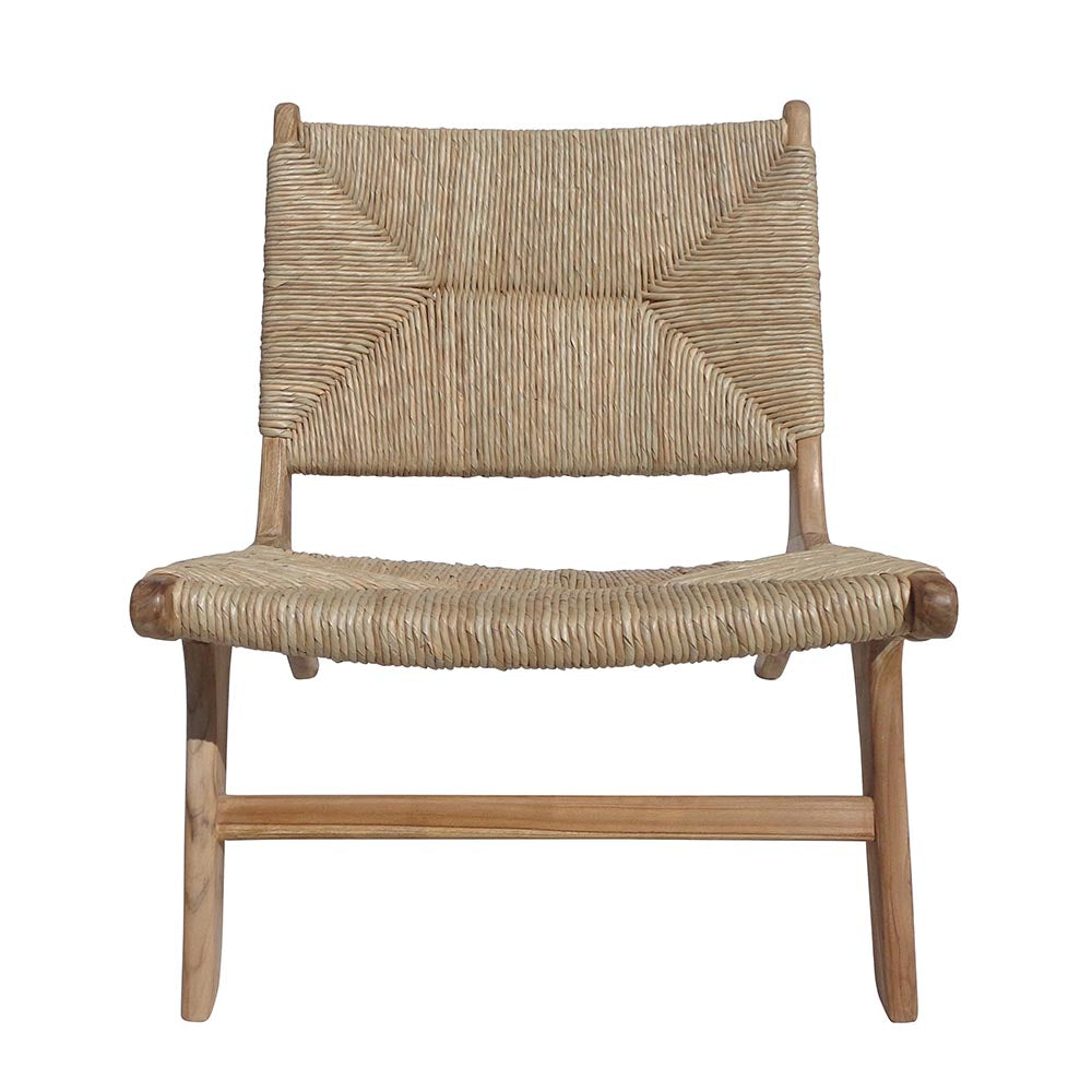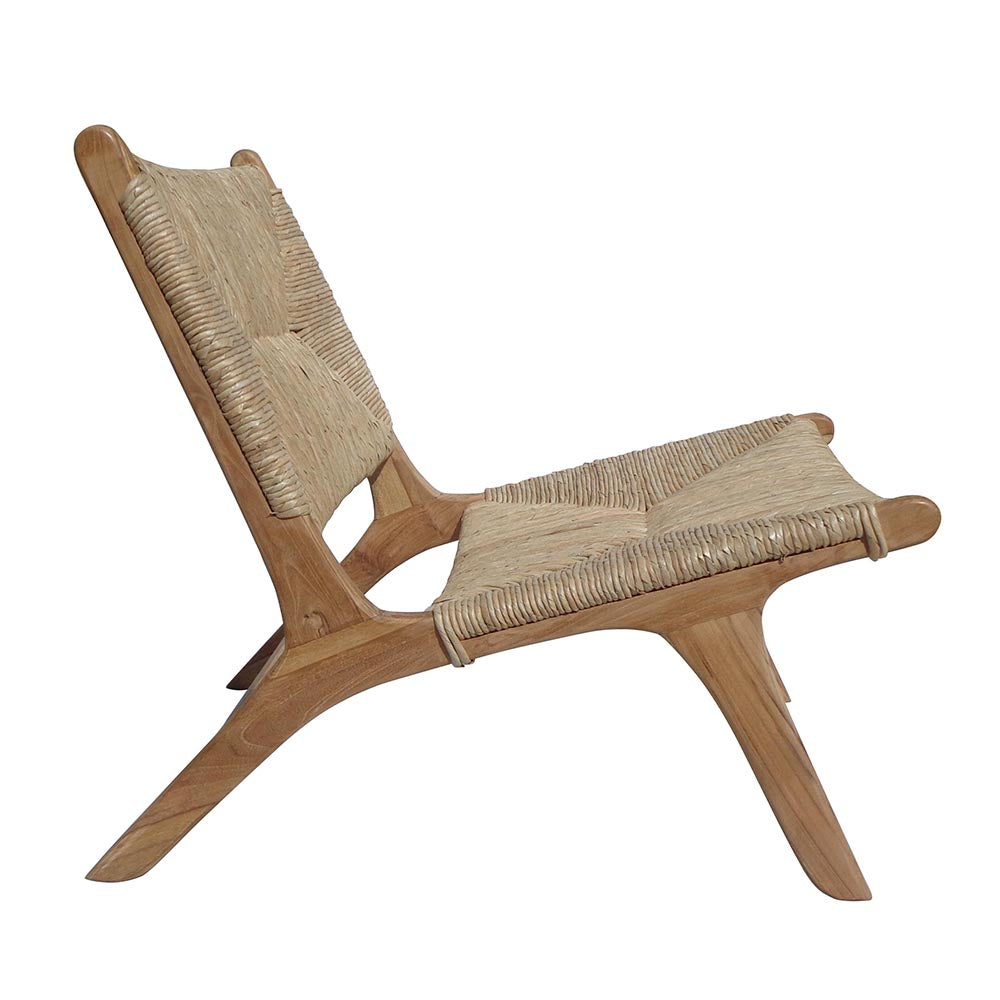 Материал: Структура от тиково дърво / седалка и облегалка, тапицирани с бананови влакна Цвят : Естествено Инструкции за пране : Почистете с влажна кърпа.